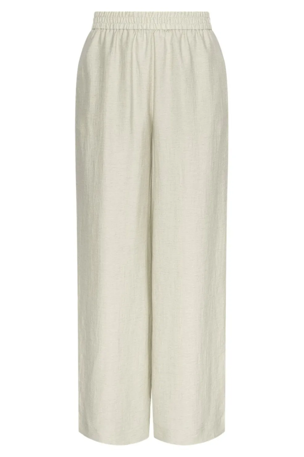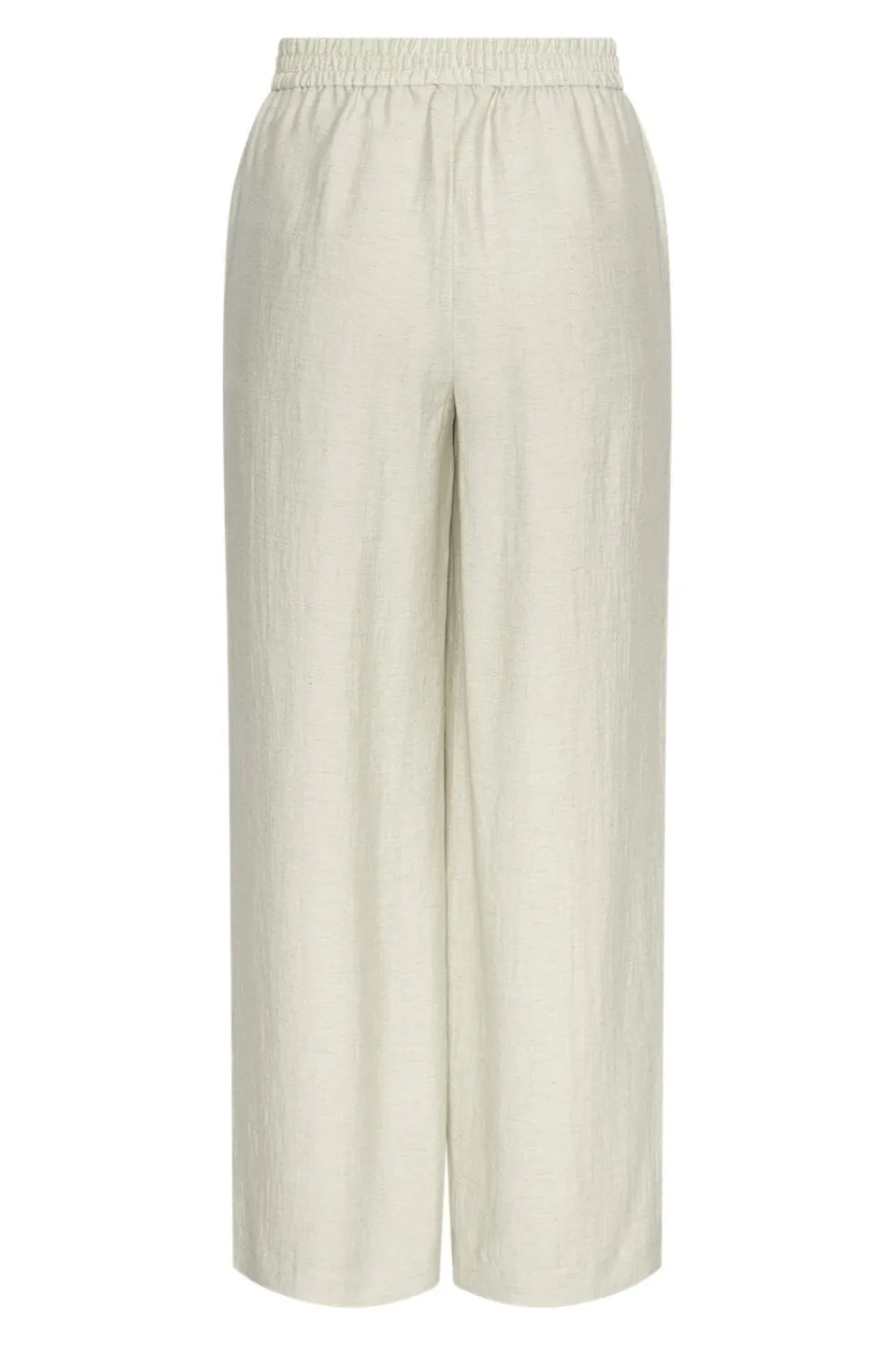 Løstsiddende bukser fra Moss Copenhagen i en neutral sandfarvet melange. Bukserne har brede ben og en elastisk talje, der giver god bevægelsesfrihed.