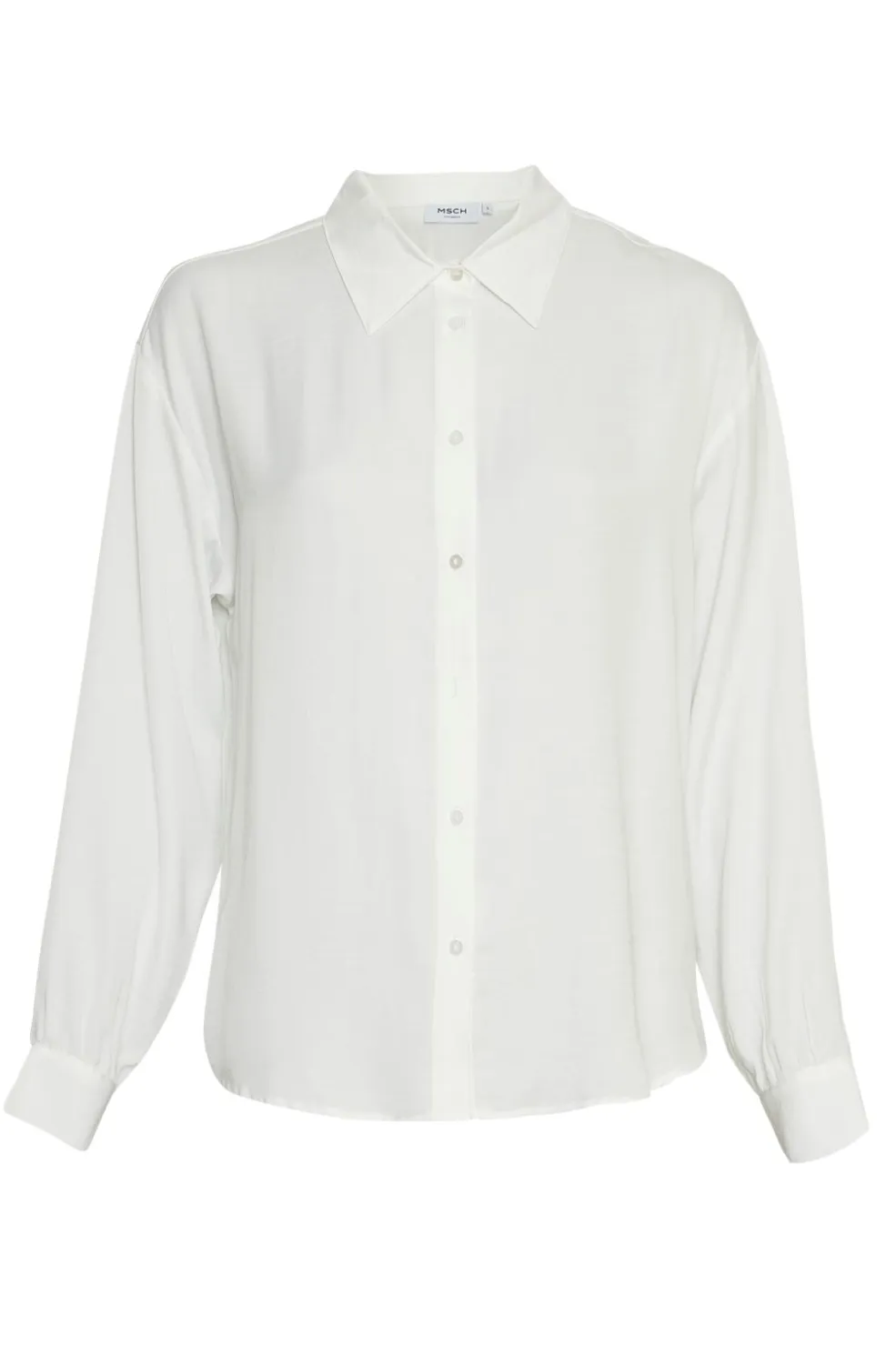 Hvid skjorte fra Moss Copenhagen i en blød blanding af genanvendt polyester og viskose. Skjorten har en klassisk knaplukning foran og en traditionel skjortekrave.