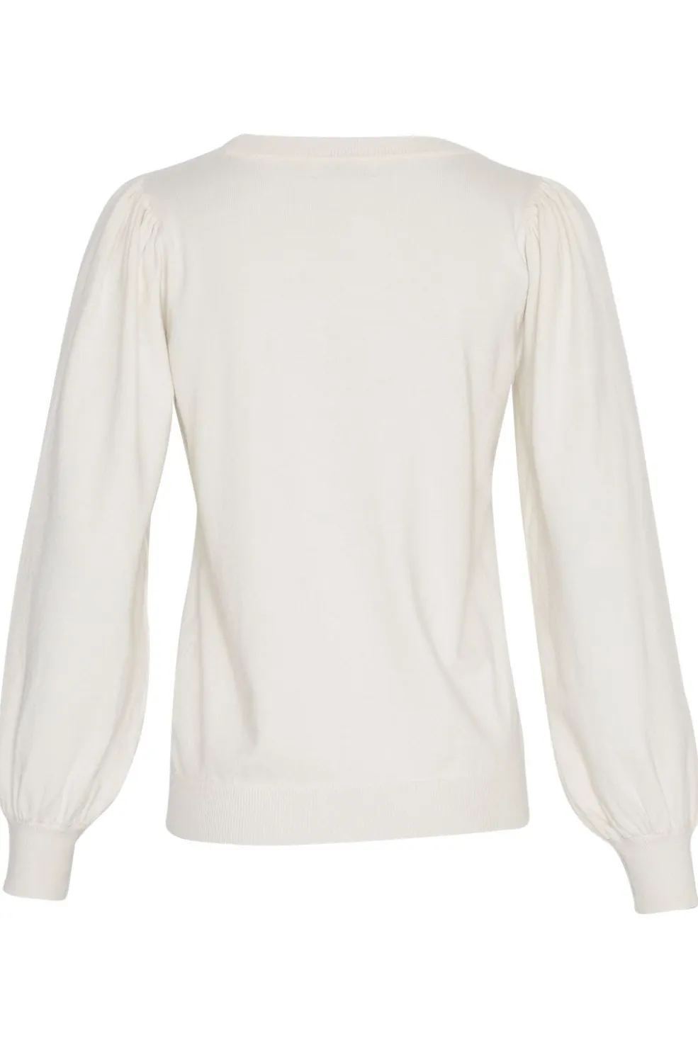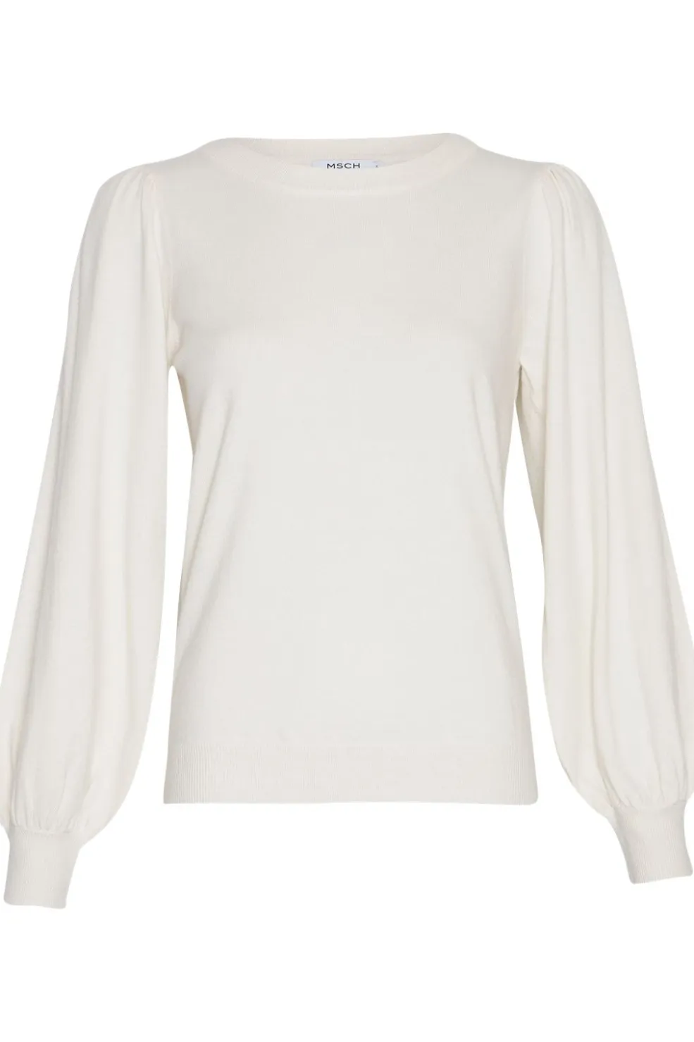 Cremehvid pullover fra Moss Copenhagen med rund halsudskæring. Den løse pasform og de puffede ærmer giver en moderne og afslappet stil.
