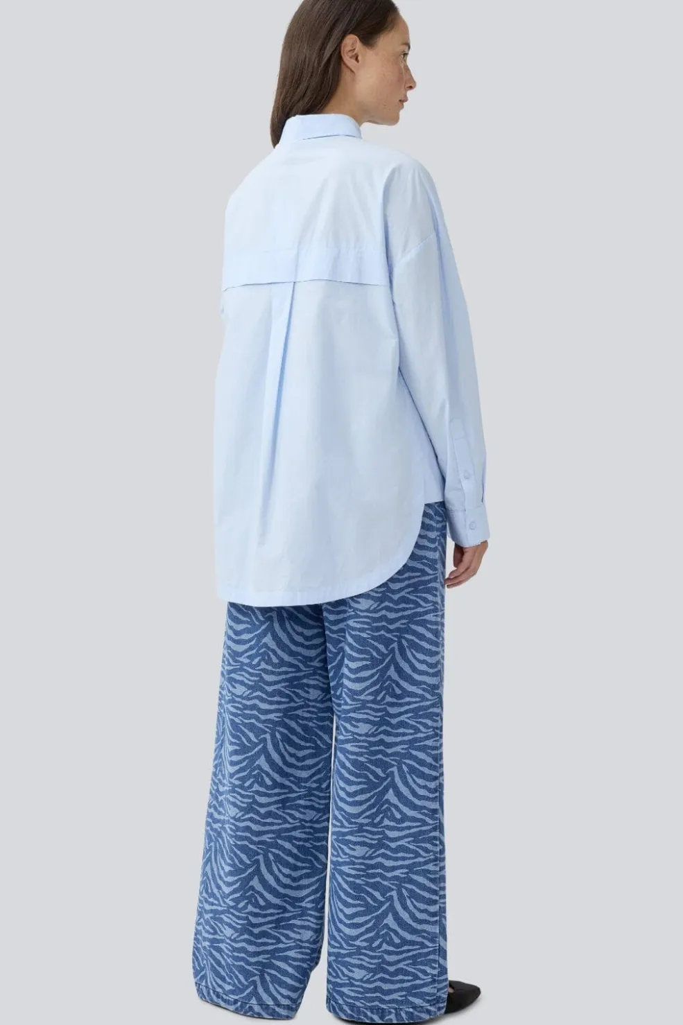 Lyseblå skjorte fra Modström i en oversized pasform. Den skjulte knaplukning og slidsen i siden giver skjorten et rent og enkelt udtryk.