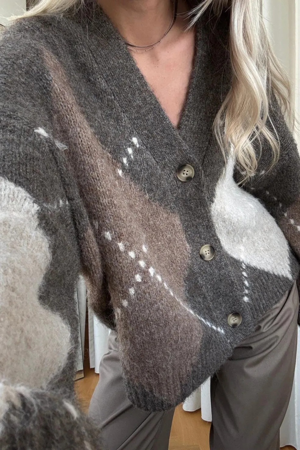 - Argyle-mønster i brune og beige nuancer