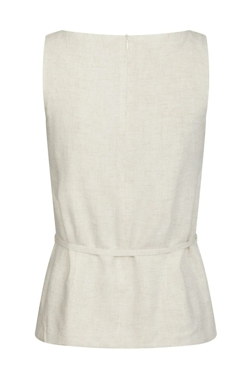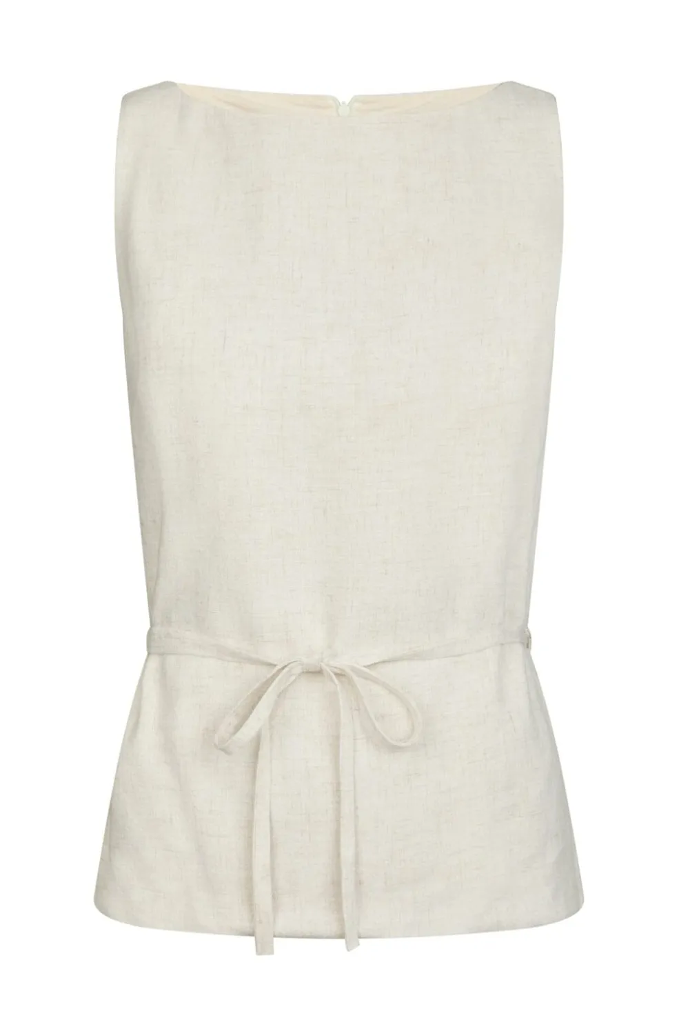 Ærmeløs top fra Neo Noir i naturlig farve. Den har peplum-design med bindebånd i taljen og en rund halsudskæring. Lynlåslukningen i ryggen gør den nem at tage af og på.