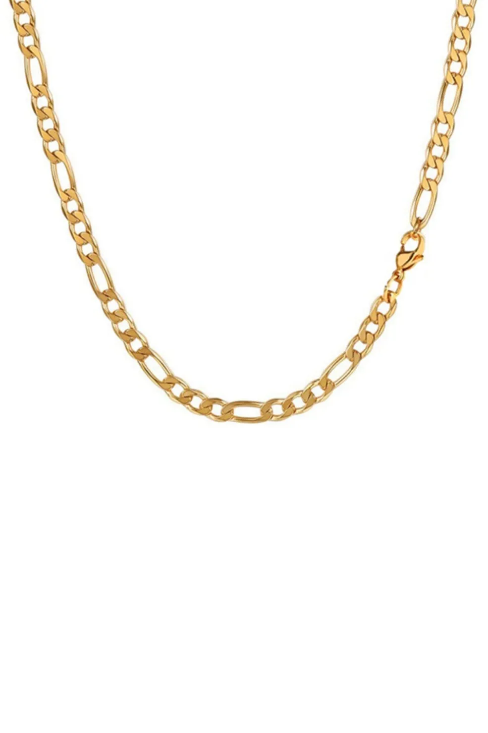 Forgyldt halskæde fra Mellow Moon med Figaro-kædemønster i rustfrit stål. Kæden har et klassisk design med vekslende korte og lange led i en 1+3-kombination.