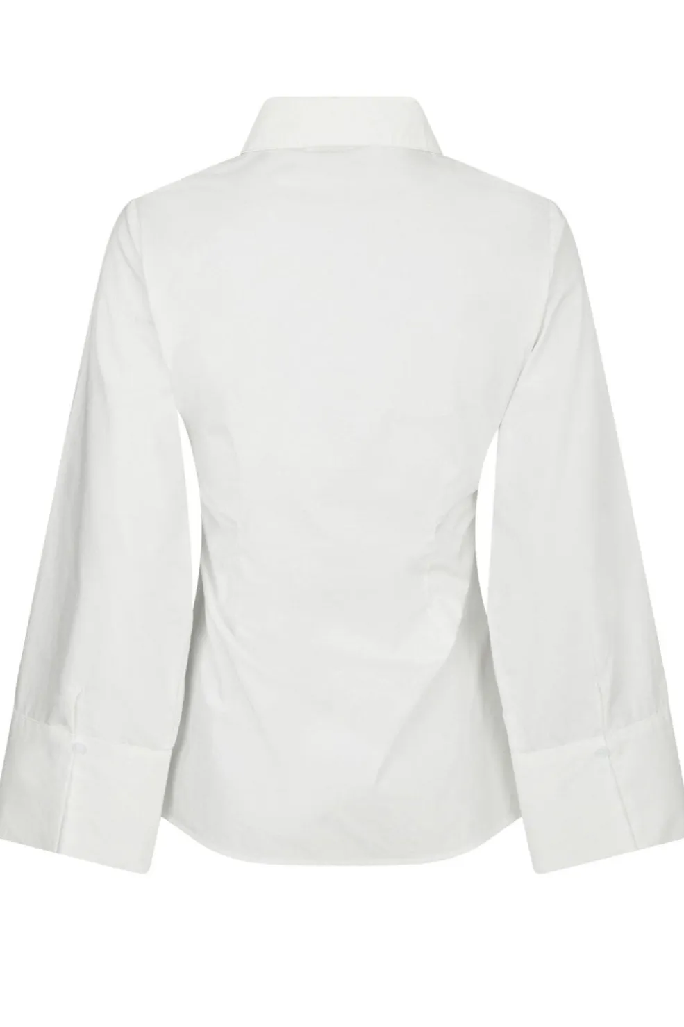 Hvid poplinskjorte fra Neo Noir med lange ærmer og klassisk krave. Skjorten har en tætsiddende pasform med rynkedetaljer i siden og let udvidede manchetter.