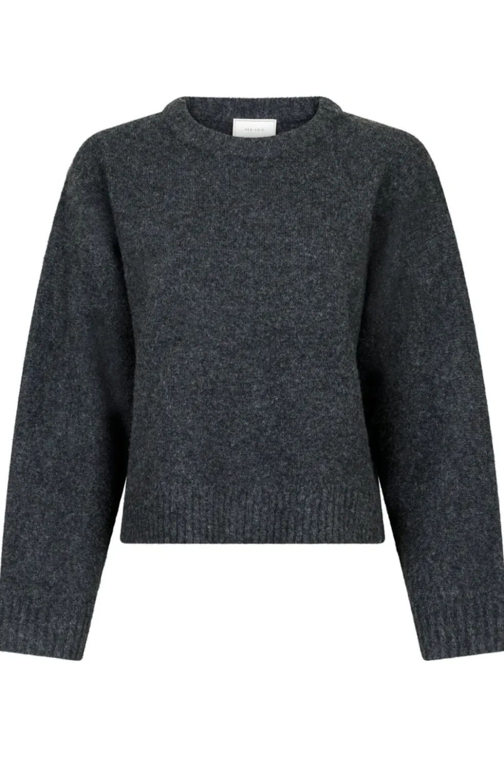Strikbluse fra Neo Noir i antracitgrå. Den cropped længde og løse pasform gør den nem at style med højtaljede bukser. De store ærmer giver et afslappet look.