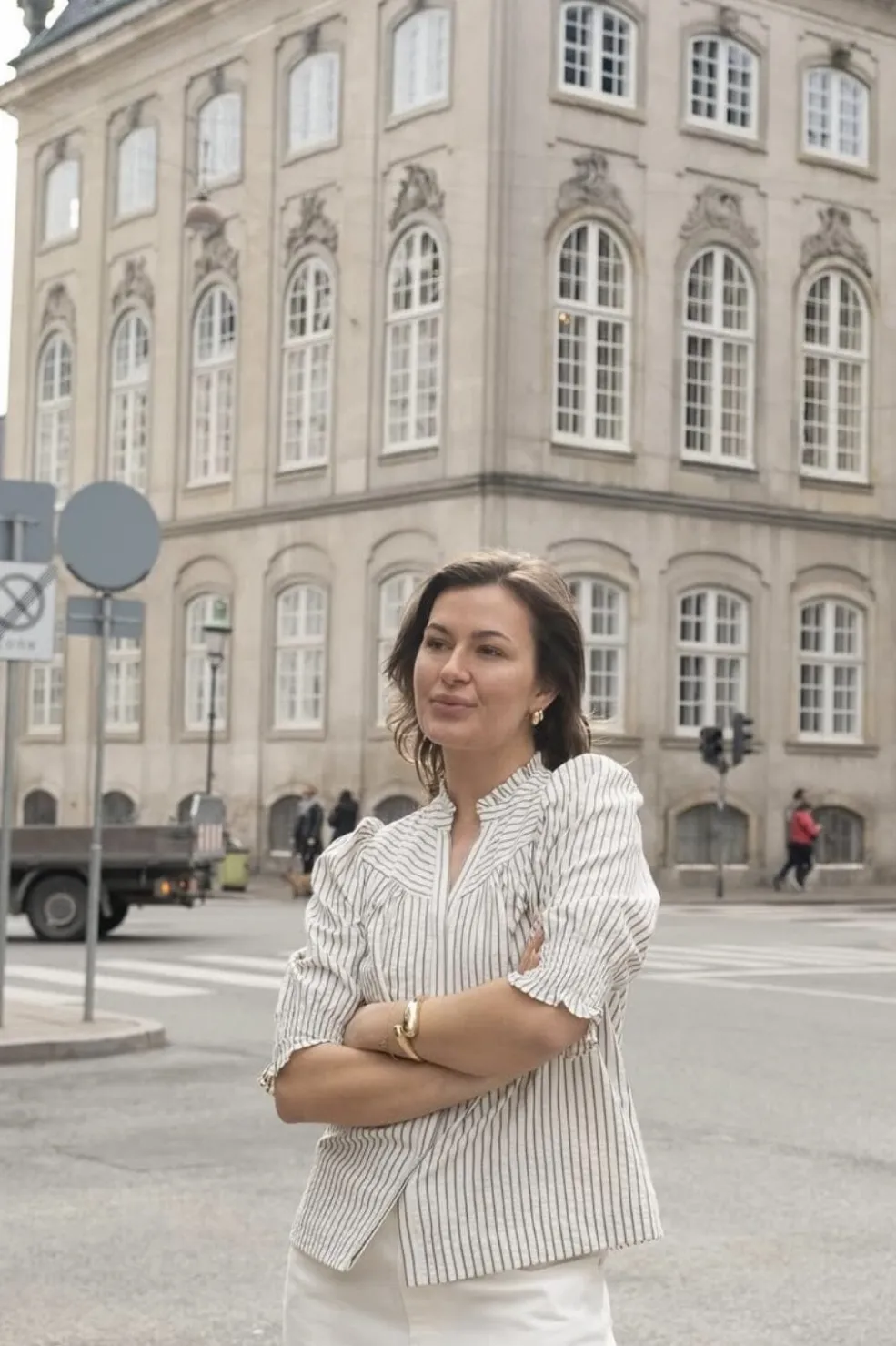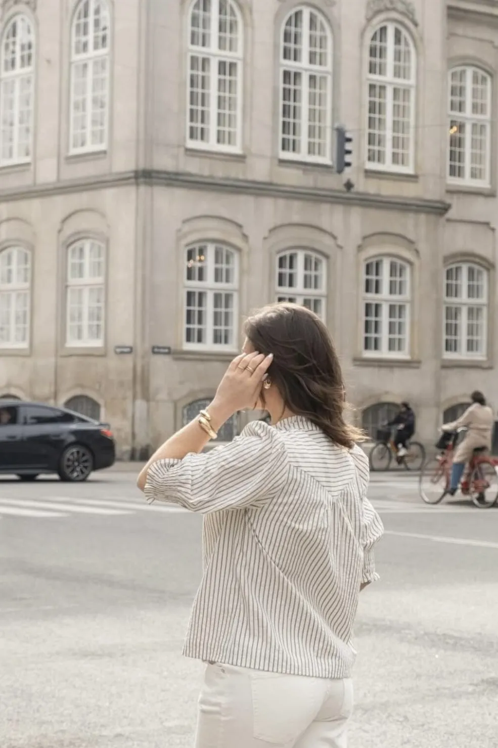 - Modellen er 176 cm høj og bærer størrelse 36