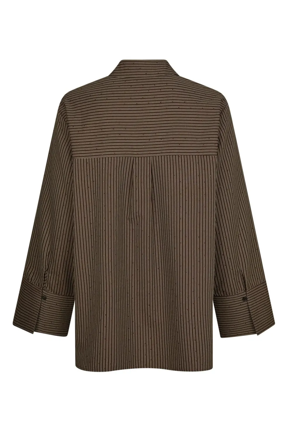 Mørkebrun stribet skjorte fra Neo Noir med oversized pasform. Skjorten har en klassisk krave, knaplukning foran og lange ærmer med manchetter.