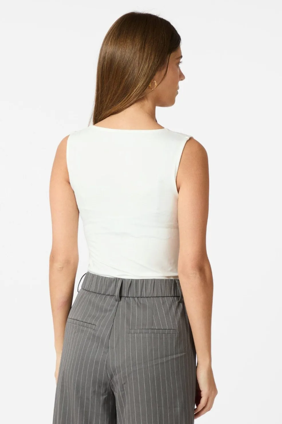 Hvid jersey-top fra Neo Noir med rund halsudskæring. Den ærmeløse top har en behagelig pasform og er fremstillet i blødt jersey-materiale.
