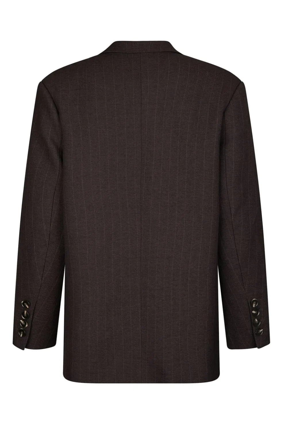 Mørkebrun blazer fra Neo Noir med pinstripe-mønster. Blazeren har en oversize-pasform og passer til både formelle og afslappede lejligheder.