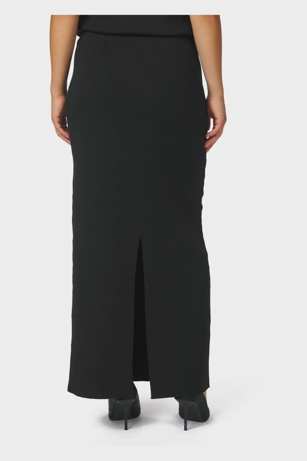 Sort strikket nederdel fra Neo Noir i fast strik med stretch. Nederdelen har en lige pasform med elastisk talje og en slids bagpå, der gør den behagelig at have på.