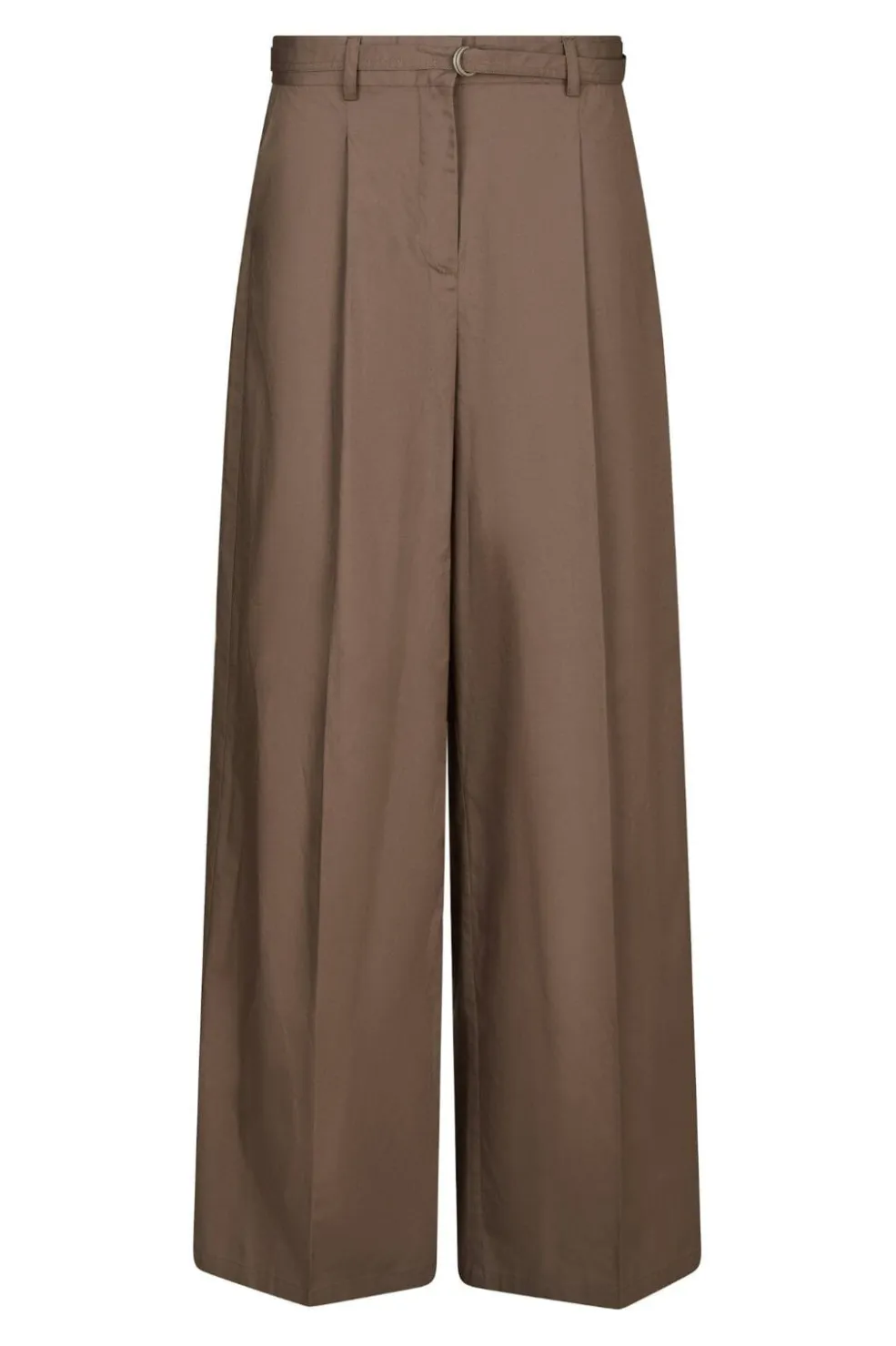Poplinbukser fra Neo Noir i støvet brun. Bukserne har høj talje og pressefolder foran. Den vide benåbning og det lette poplinmateriale giver bukserne et luftigt udtryk.