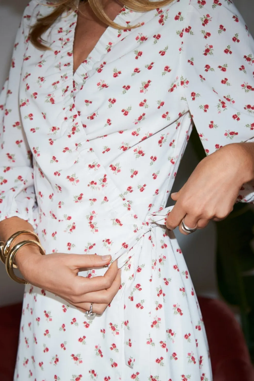 - Modellen er 176 cm høj og bærer størrelse 36