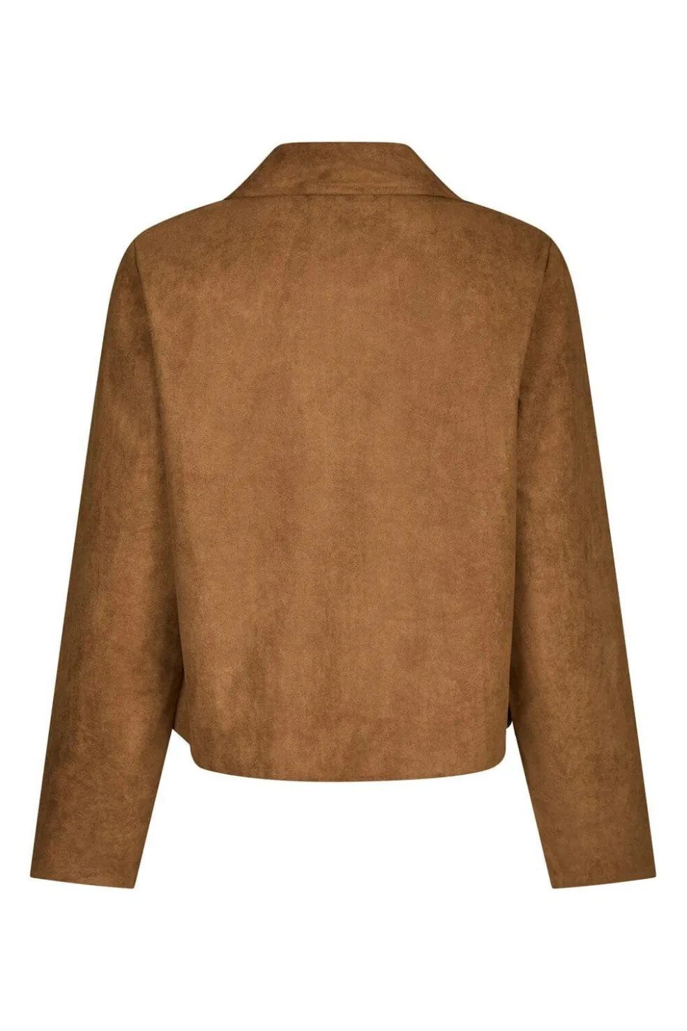 Brun jakke i imiteret ruskind fra Neo Noir. Jakken har en Peter Pan-krave, knapper foran og praktiske lommer på forsiden. Den løse pasform gør den velegnet til lag-på-lag-påklædning.