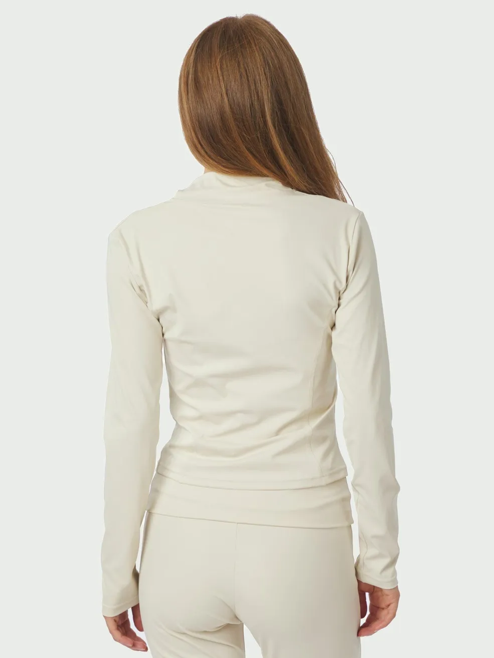 Hvid bluse fra Neo Noir med lynlås foran og høj krave. Blusen har en sporty stil med tætsiddende pasform og lange ærmer.