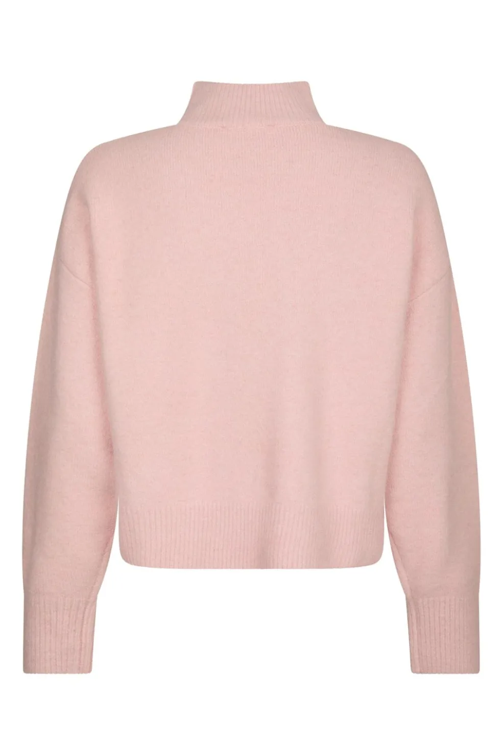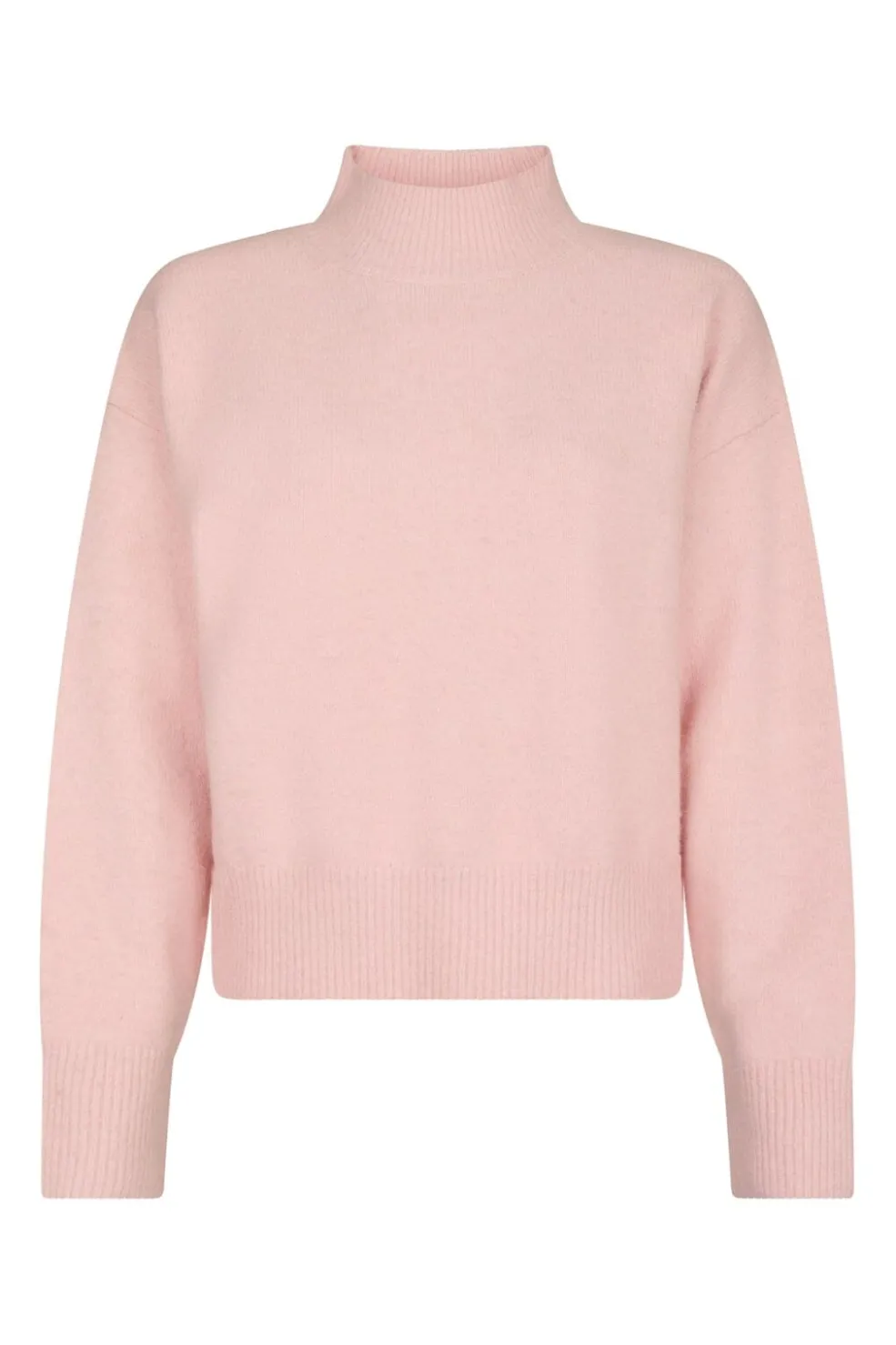 Strikbluse fra Neo Noir i lys pink. Blusen har en høj turtleneck og lange ærmer. Den løse pasform giver en boxy silhuet.