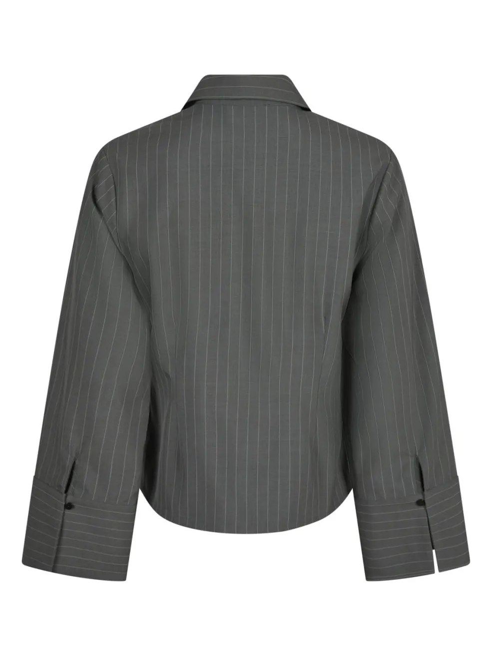 Grå skjorte fra Neo Noir med rosa nålestribet mønster. Skjorten har lange ærmer, skjortekrave og knaplukning foran.