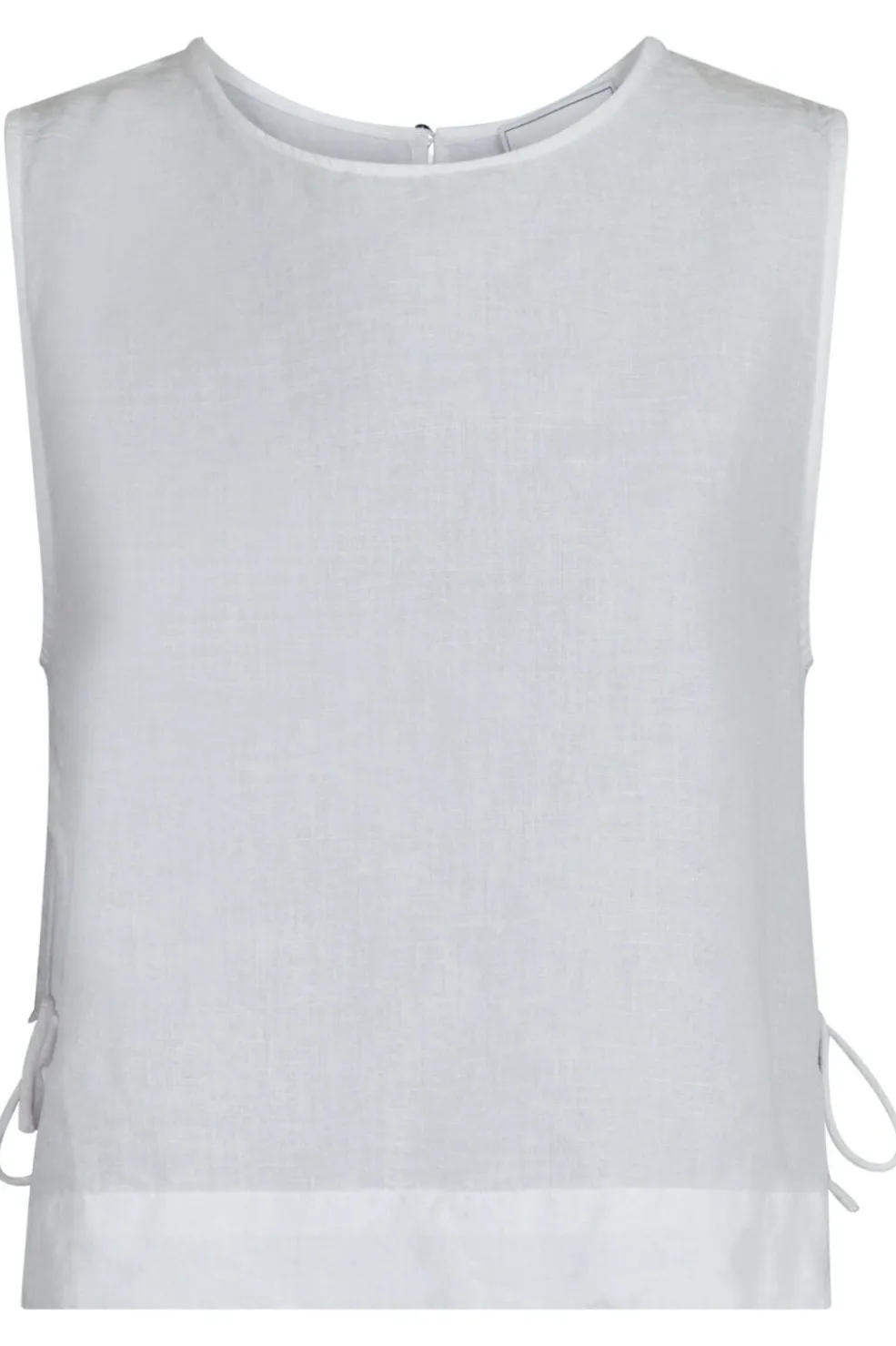 Hvid linnetop fra Neo Noir med bindebånd i siden. Toppen har et ærmeløst design og er lavet af en blanding af hør og bomuld, der giver en let og luftig fornemmelse.