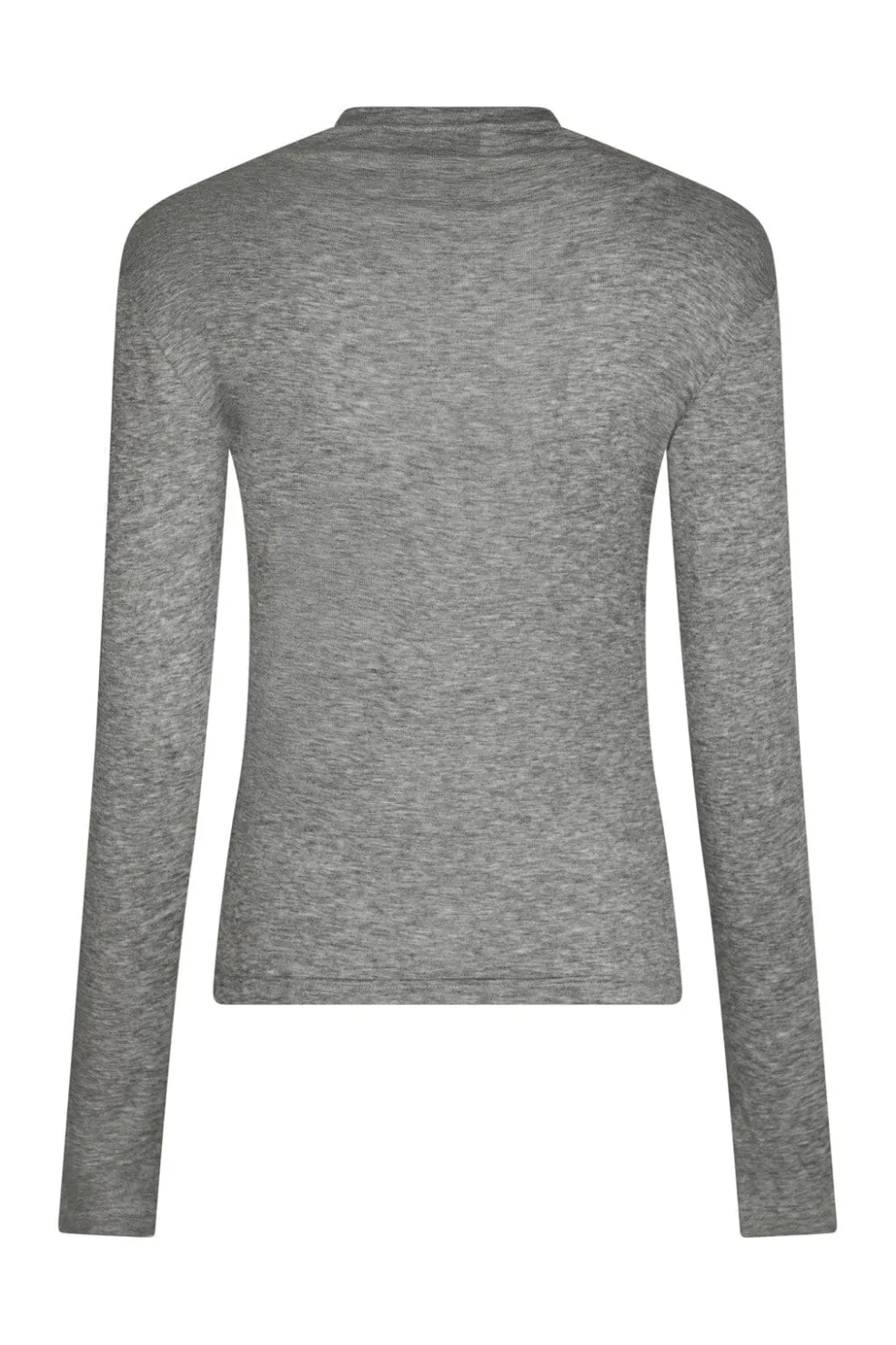 Grå ribstrikket bluse fra Neo Noir med høj hals og tætsiddende pasform. Blusen har en meleret overflade og er fremstillet i en blød blanding af lyocell og uld.