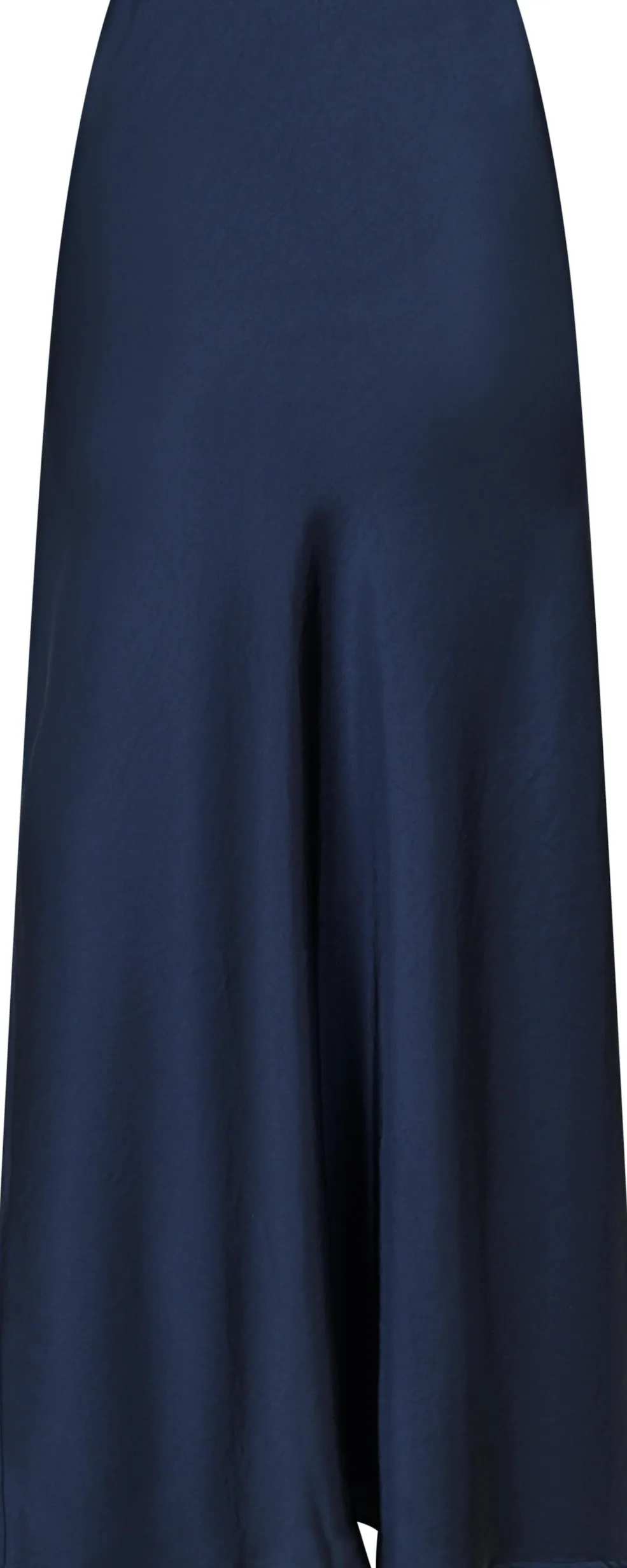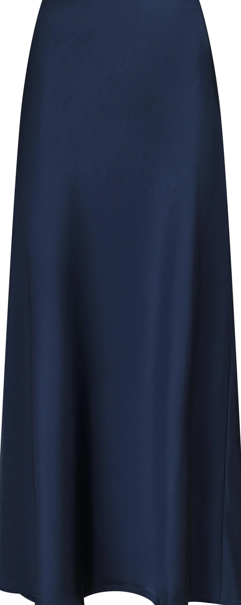 Mørkeblå nederdel i heavy sateen fra Neo Noir. Den skrå skæring og ankellængden giver nederdelen et rent snit og god bevægelighed.