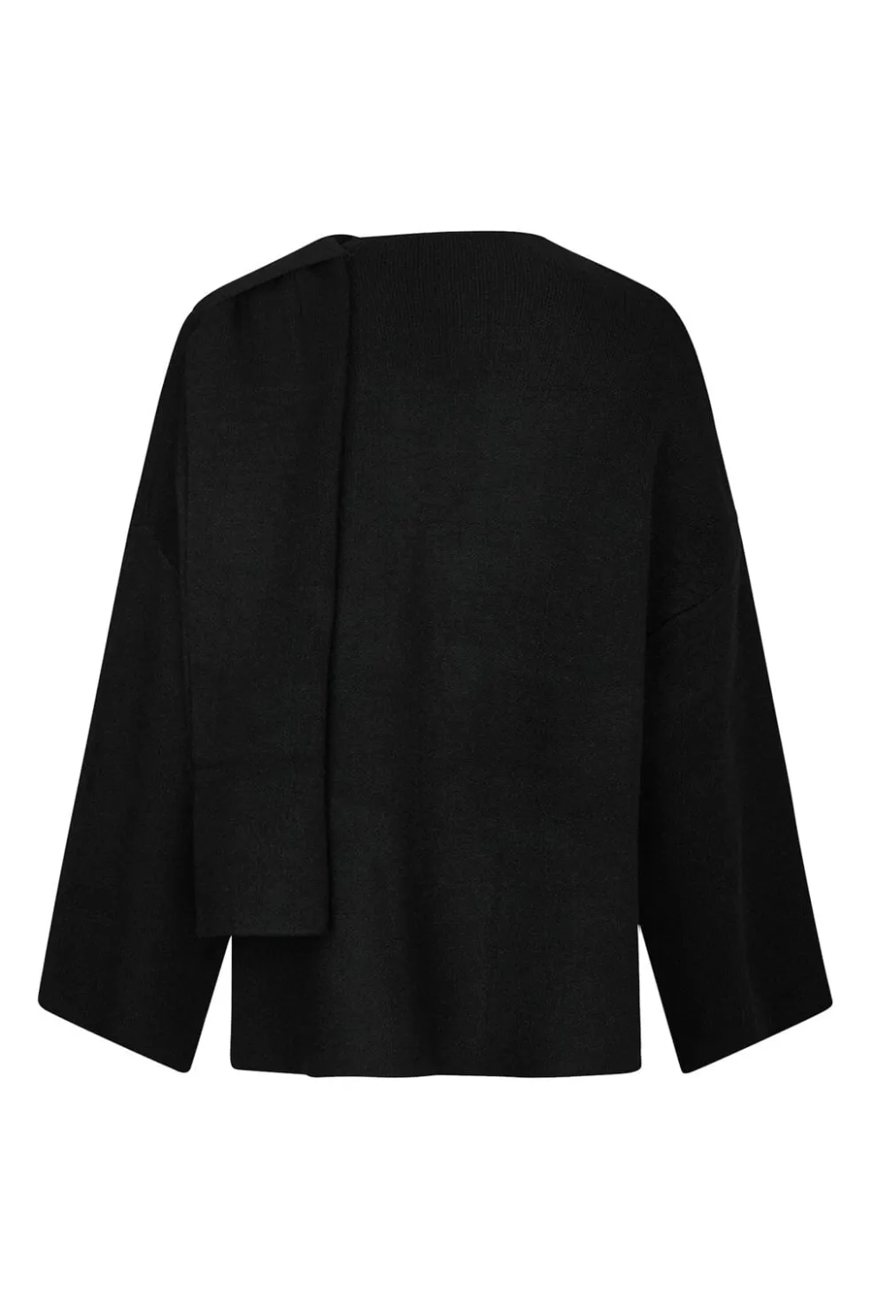 Sort strikbluse fra Neo Noir med indbygget tørklædedetalje ved halsen. Blusen har en løs pasform og 3/4-ærmer, der gør den praktisk til hverdagsbrug.
