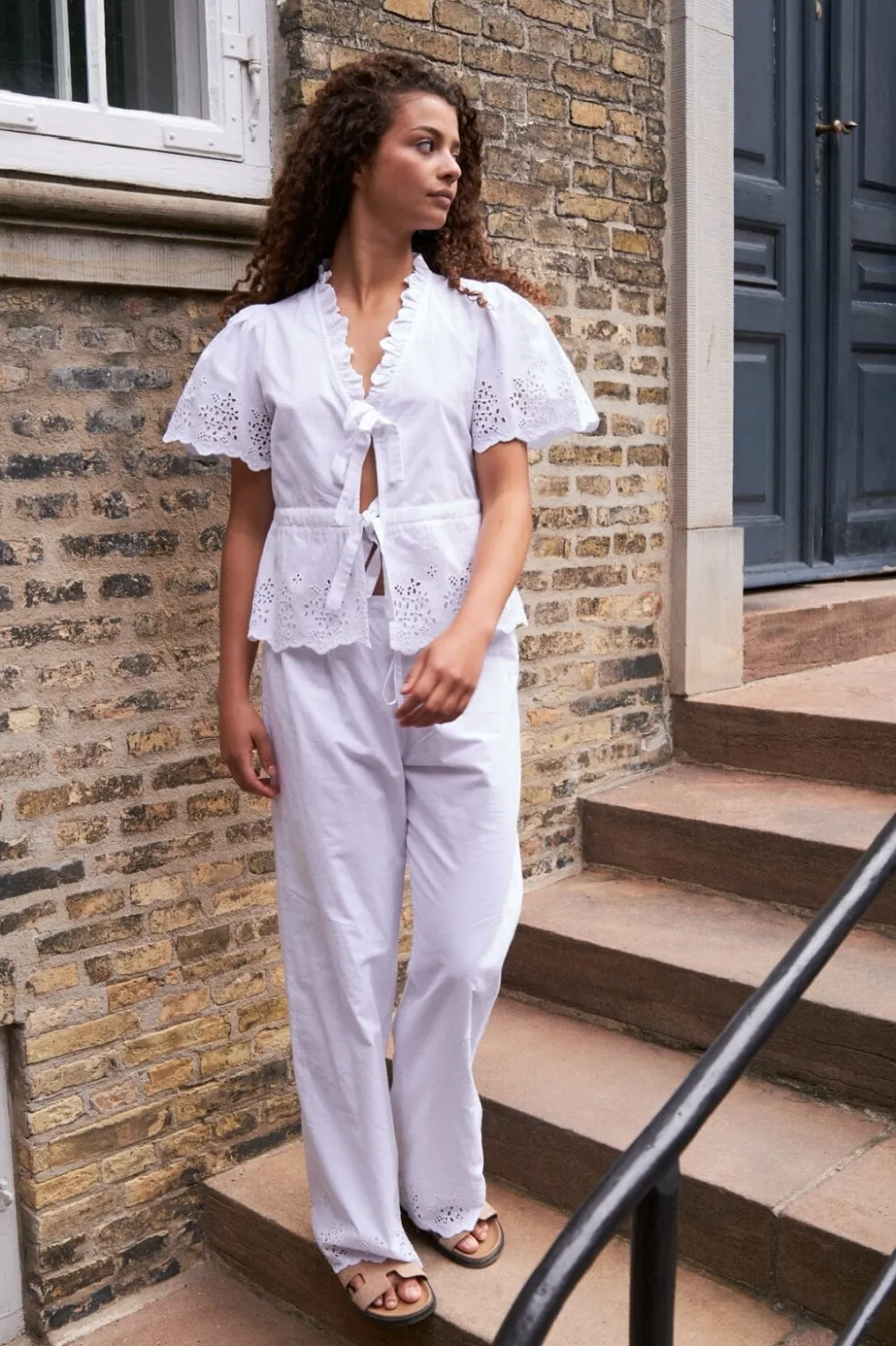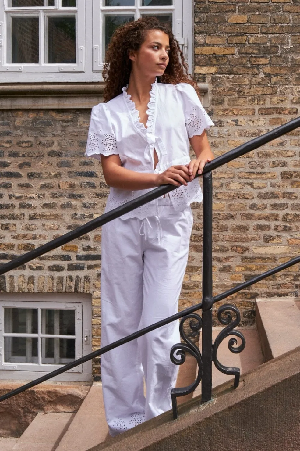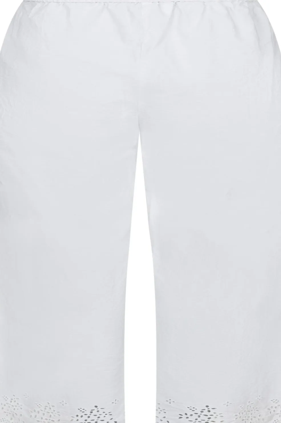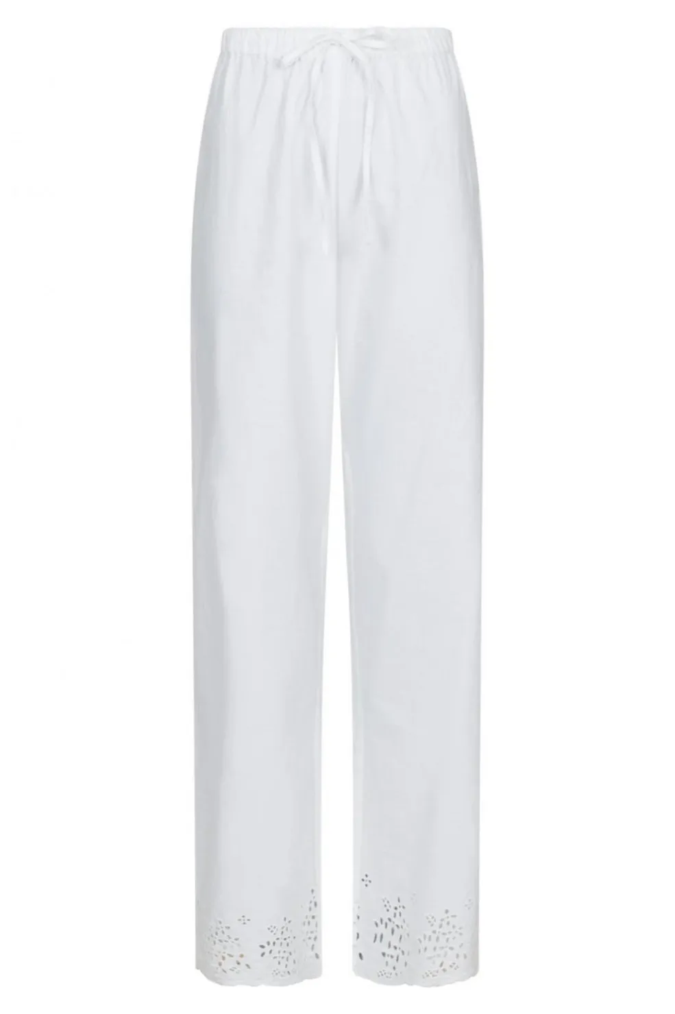 Hvide bukser i bomuld med broderi ved buksebenene. Den løse pasform og snørebåndslukning giver en behagelig og afslappet stil.