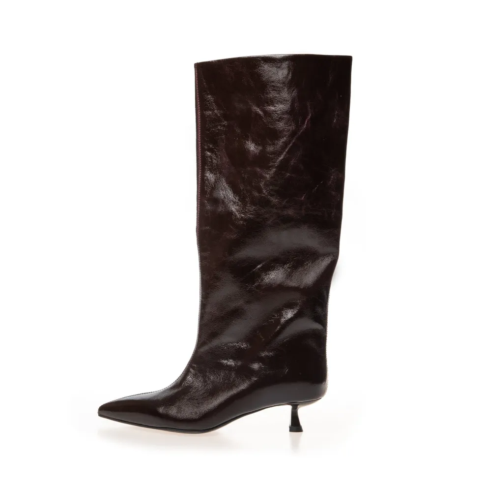 Knæhøje støvler fra Copenhagen Shoes i bordeaux læder med spids tå og stilethæl.