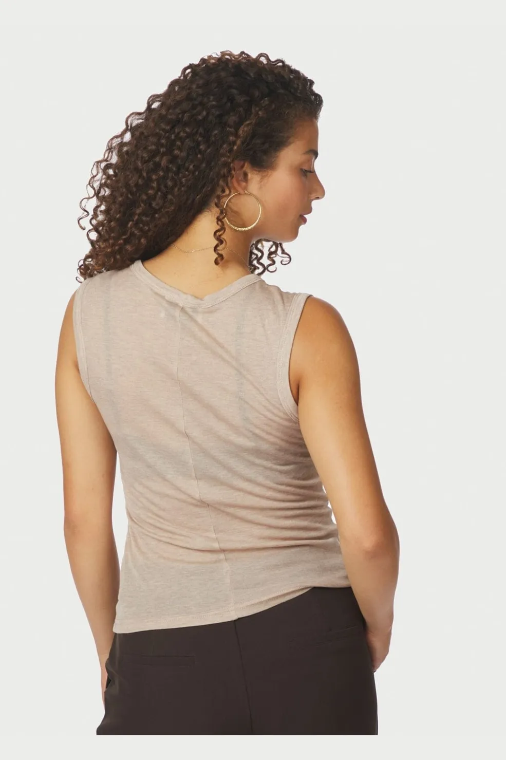 Ærmeløs ribtop fra Neo Noir i beige melange. Toppen er fremstillet af en blød blanding af lyocell og uld med fin ribstruktur og har en tætsiddende pasform.