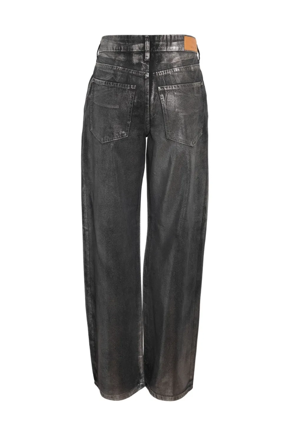 Jeans fra Noisy May med sølvbelagt overflade i mellemblå denim. Acid wash-effekten giver jeansene et skinnende, metallisk udtryk.