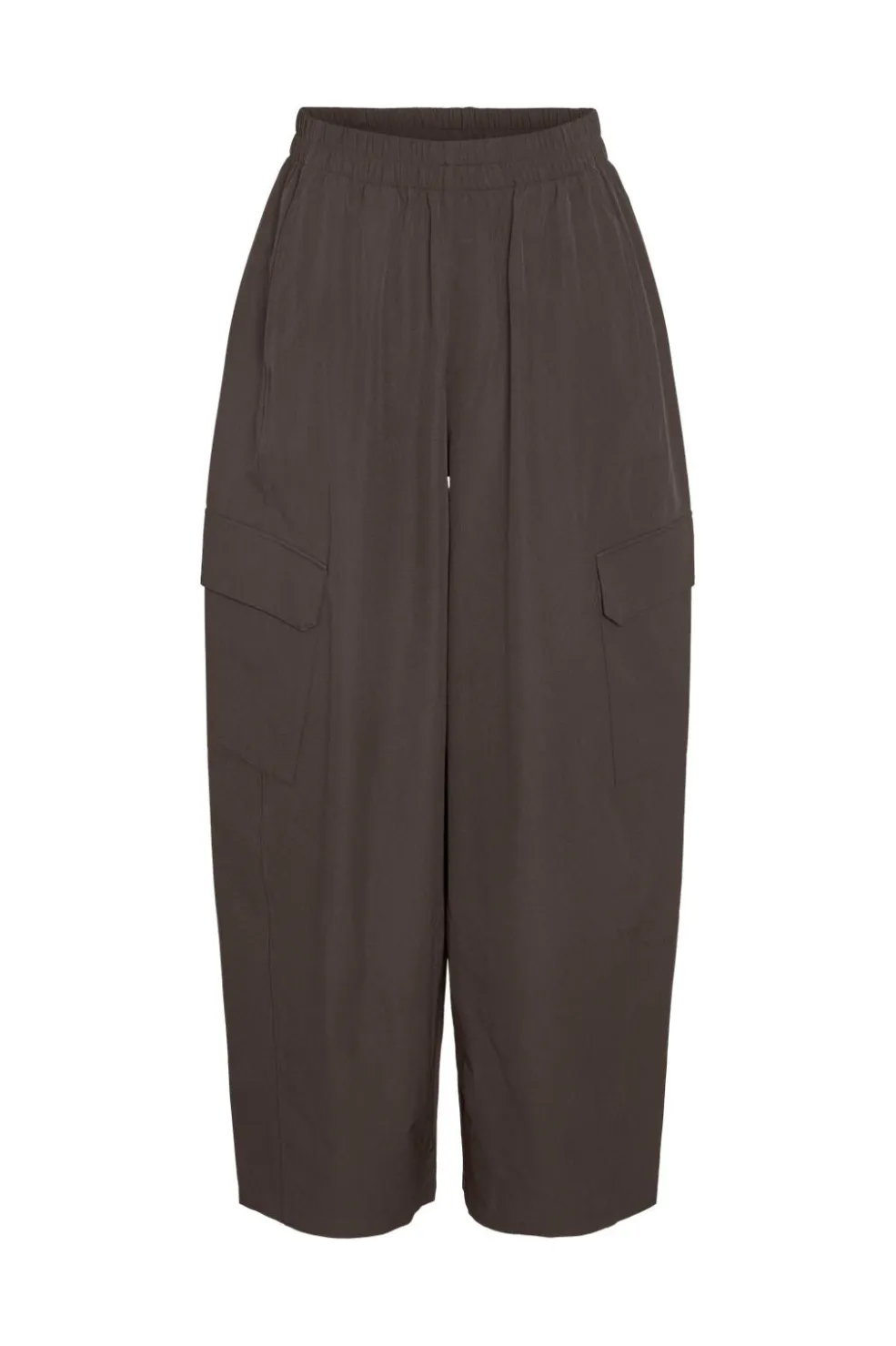 Chokoladebrune bukser fra Noisy May med en løs pasform og et ensfarvet design. Bukserne har høj talje og når ned til læggen.