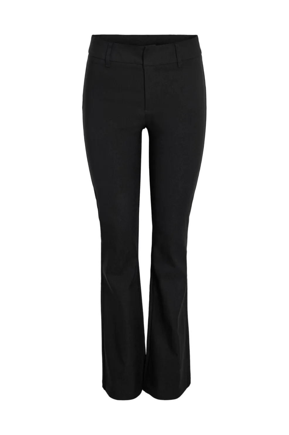 Sorte flared bukser fra Noisy May med slim fit foroven og flared ben fra knæet. Bukserne har almindelig taljehøjde og gulvlang model.