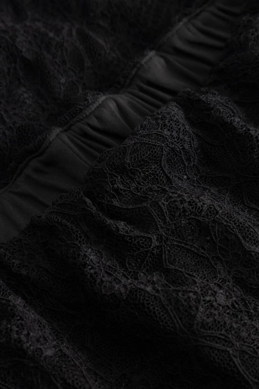 N-Lorena Pants er et par lange, vidtgående bukser i et indviklet blondemønster. Bukserne har en behagelig shortsforing og en foldet linning med justerbare snørebånd i blonde for en rynket effekt.