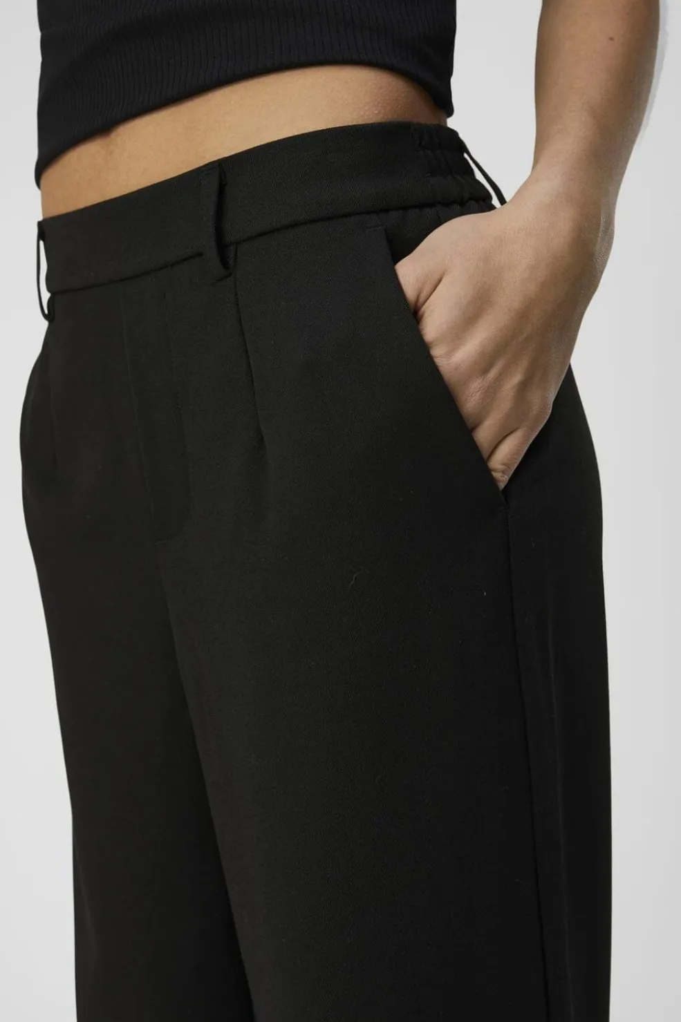 Sorte bukser fra Object med brede ben og løs pasform. Bukserne har en mellemhøj talje med elastik og sidelommer.