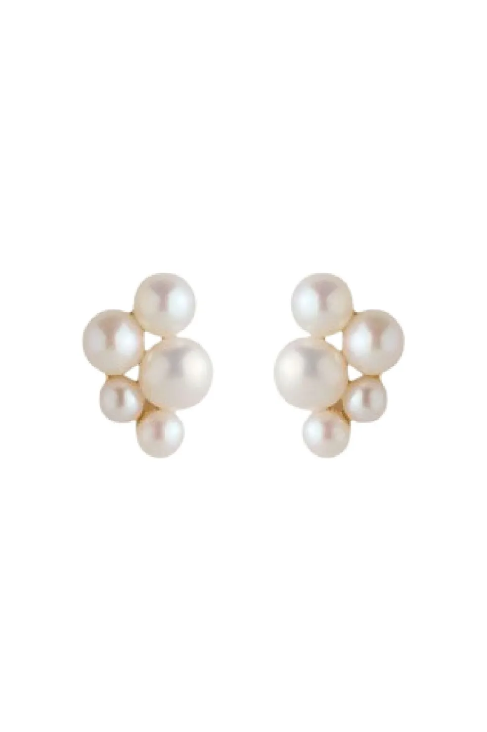 Ørestikker fra Pernille Corydon med fem ferskvandsperler i forskellige størrelser. De forgyldte øreringe er håndlavet af certificeret genbrugssølv med en guldbelægning.