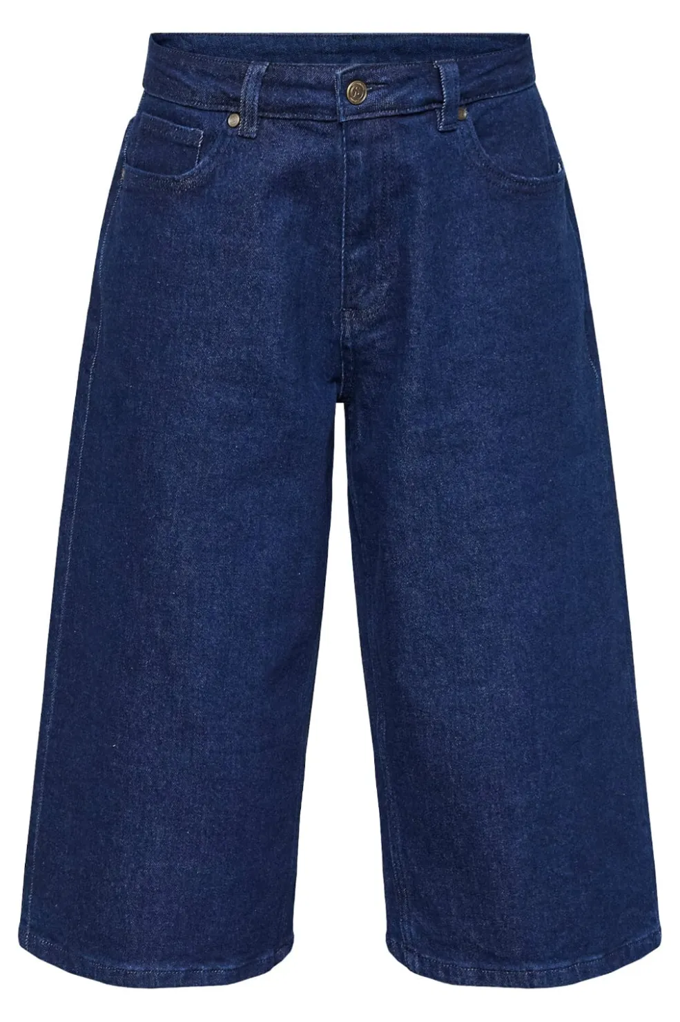 Denimshorts fra Sisters Point i mørkeblå denim. Shortsene har en løs pasform med lige ben og en længde til midt på læggen.