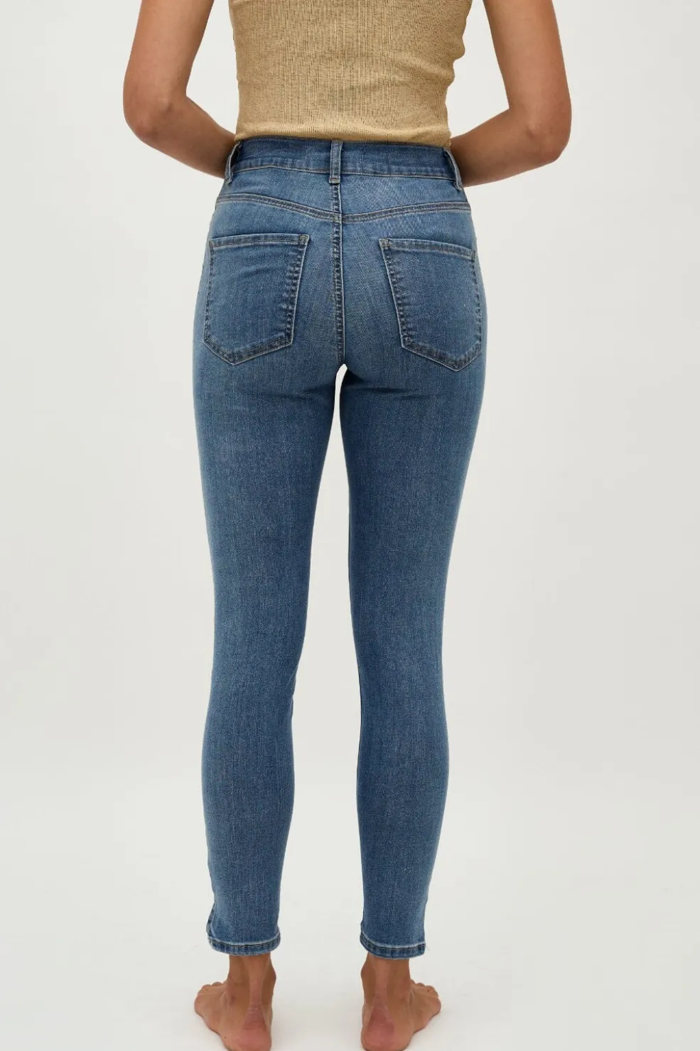 Jeans fra Global Funk i vintage lys blå. De har høj talje og regular fit med et klassisk fem-lomme design. Jeansene går til anklen og lukkes med knap og lynlås.