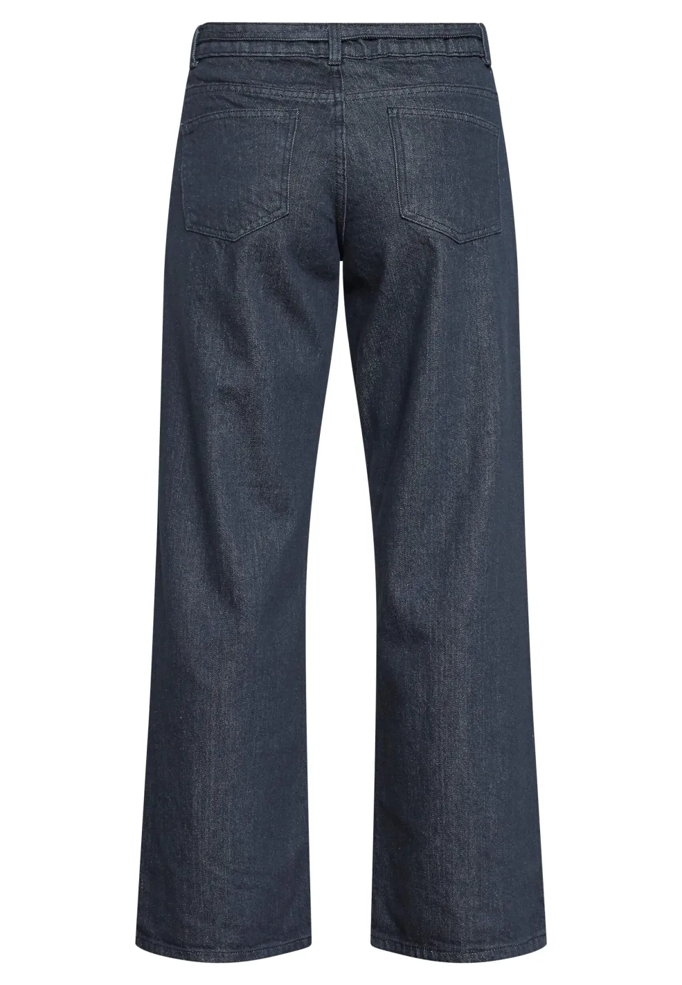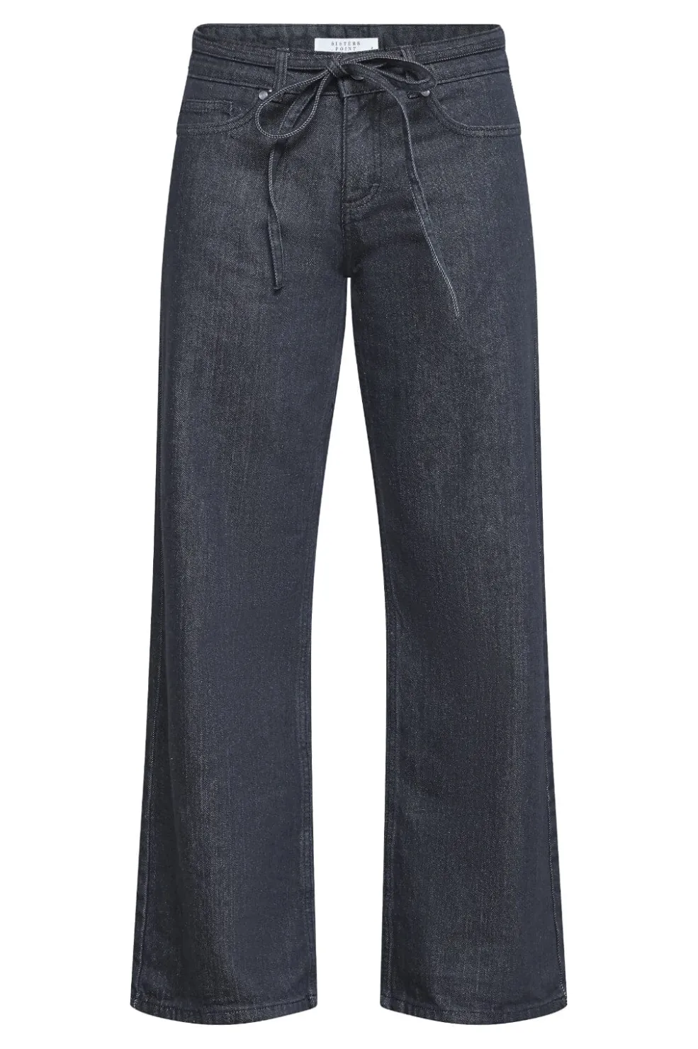 Denimbukser fra Sisters Point i sort unwashed bomuld. Bukserne har brede ben og en løs pasform med et aftageligt denimbånd i taljen.