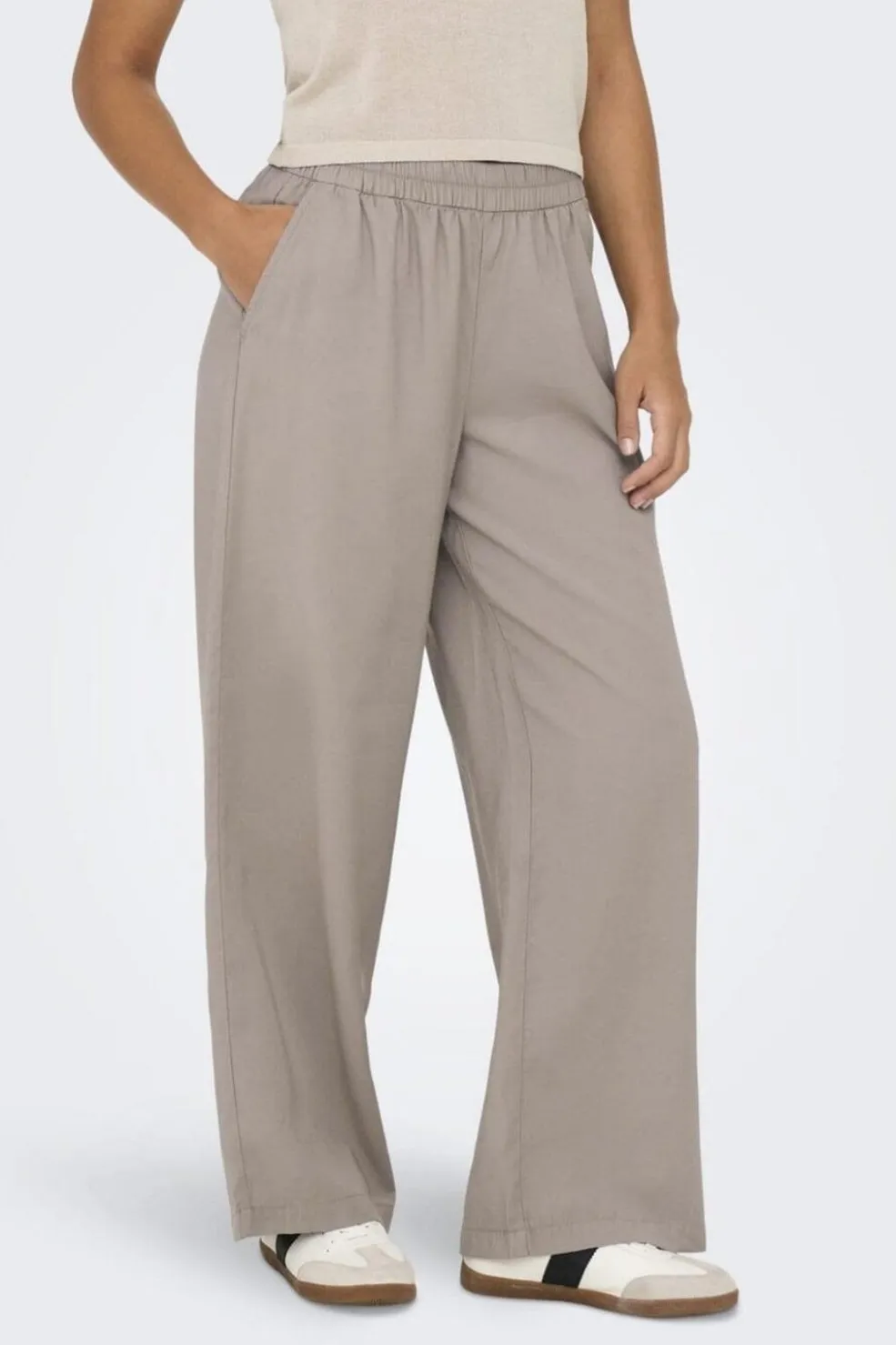 Bukser fra Only i khaki med elastisk talje og straight fit. Bukserne har en afslappet pasform og er lavet i et blødt og åndbart materiale.