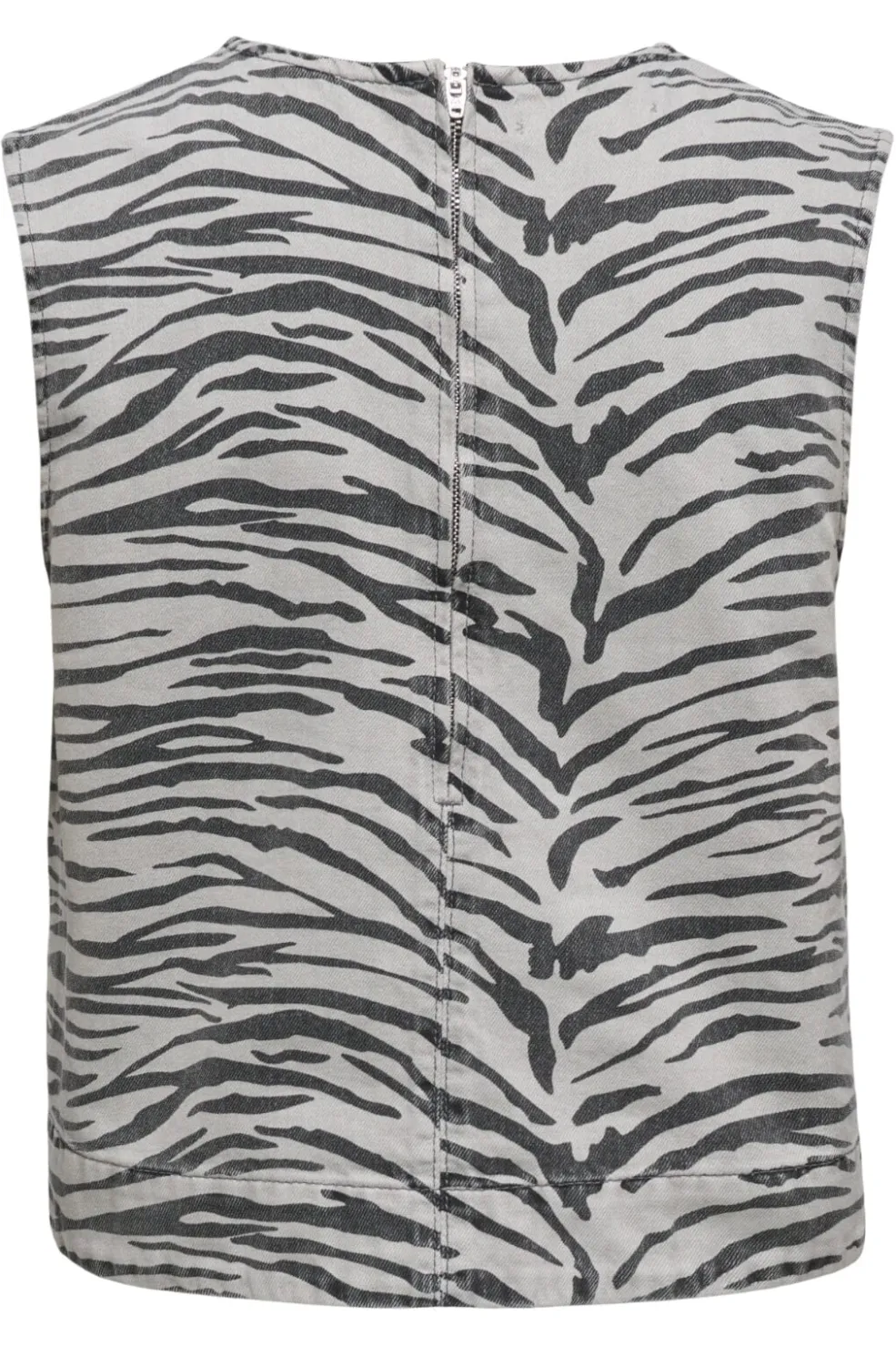 Ærmeløs top fra Only i lys grå denim med zebramønster. Toppen har en cropped længde og en rund halsudskæring. Den er lavet i et rent bomuldsmateriale med regular fit.