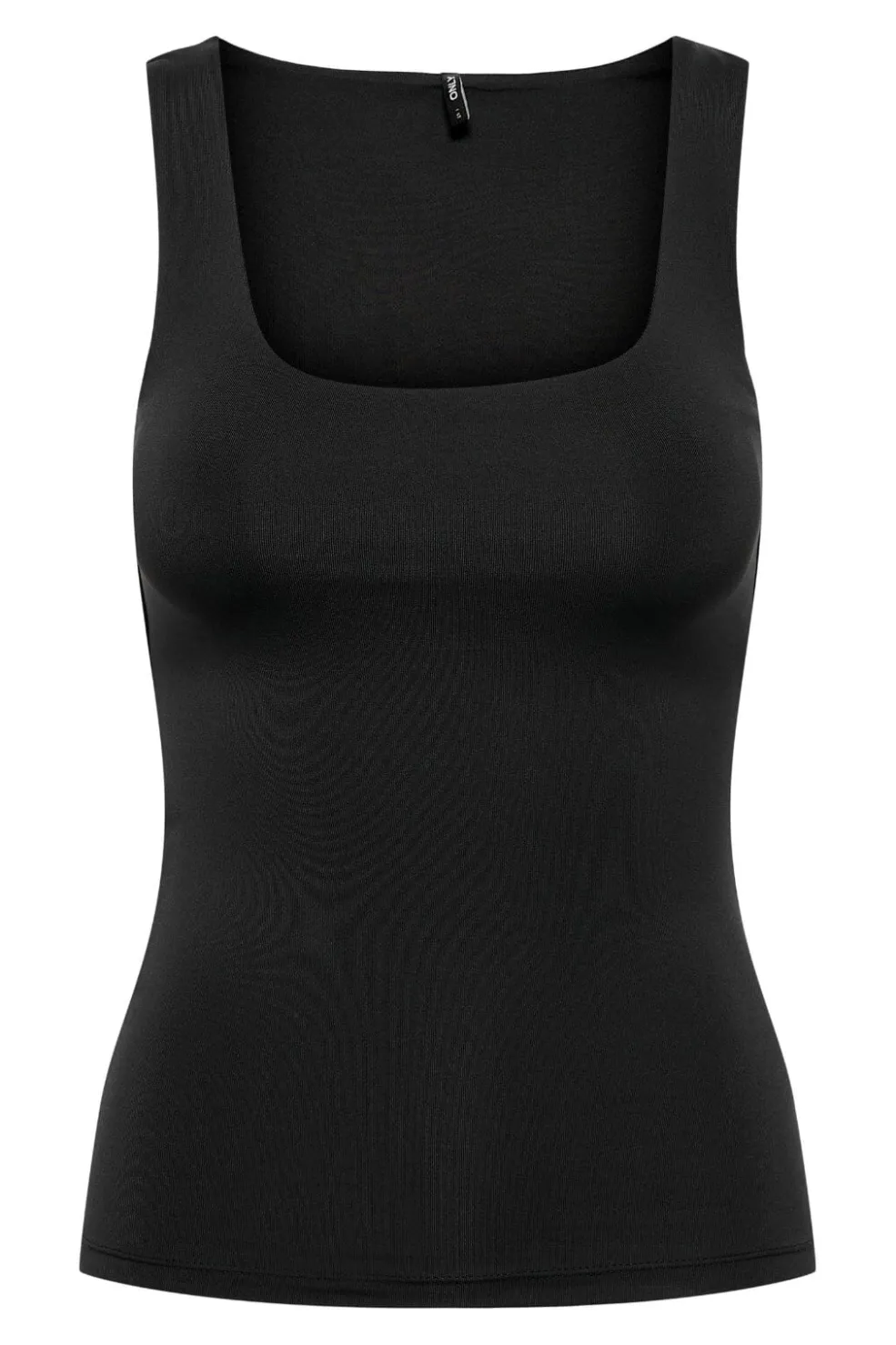 Sort ærmeløs top fra Only med rund halsudskæring. Toppen har en regular fit-pasform og er lavet i et strækbart materiale, der giver god bevægelsesfrihed.