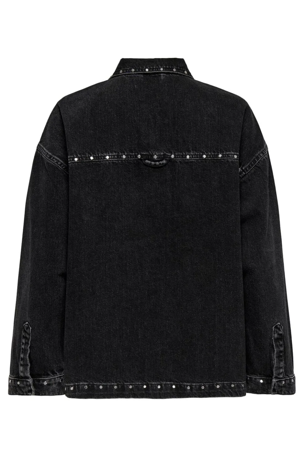 Vasket sort skjorte fra Only med nitteudsmykninger langs kraven, brystlinjen og manchetterne. Skjorten har to brystlommer og en klassisk skjortekrave.