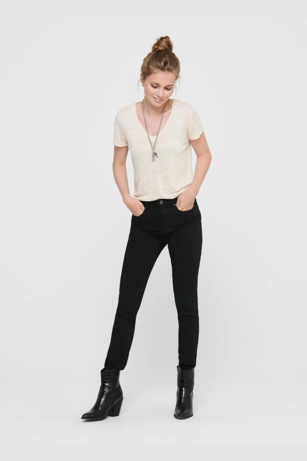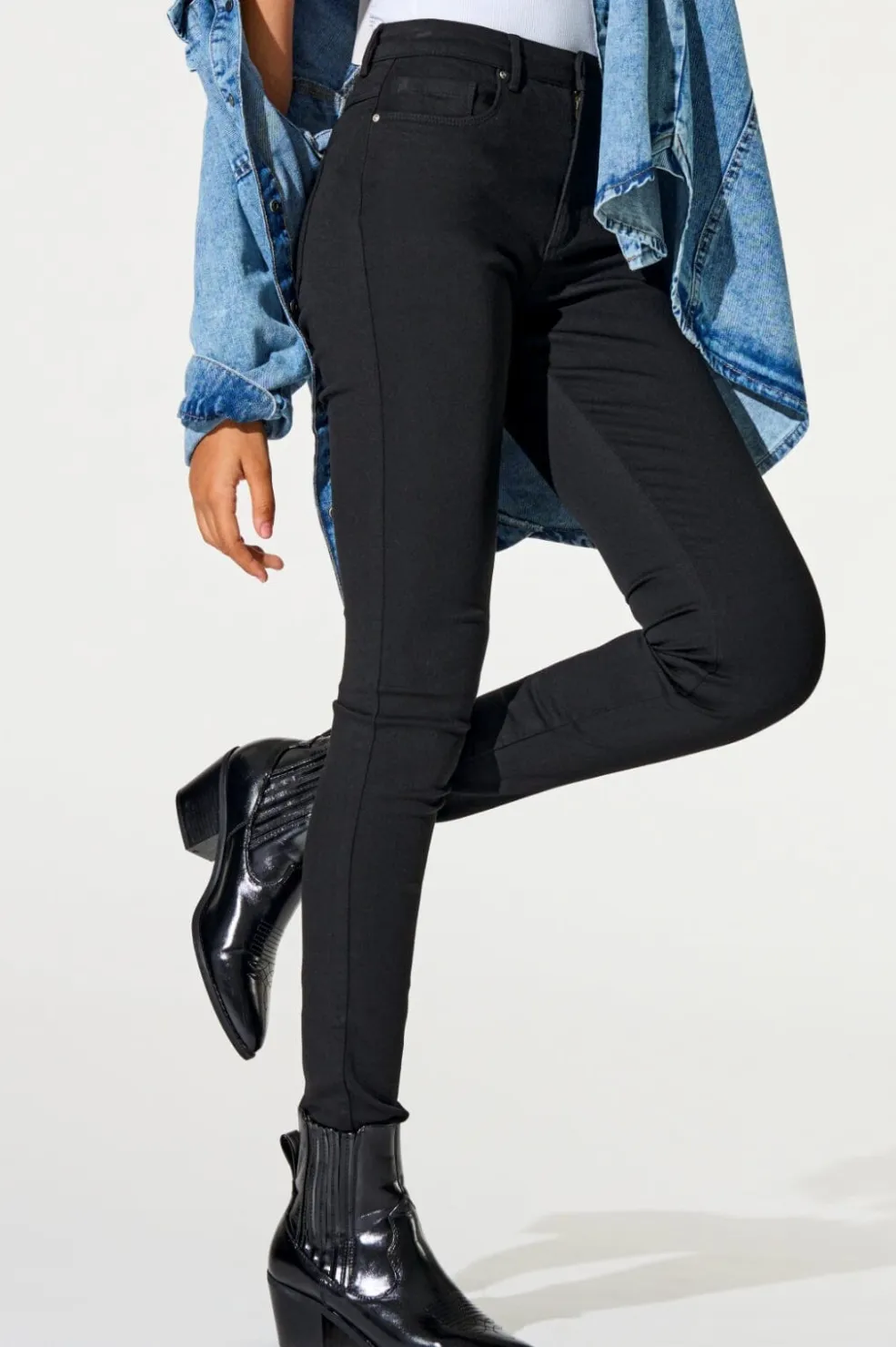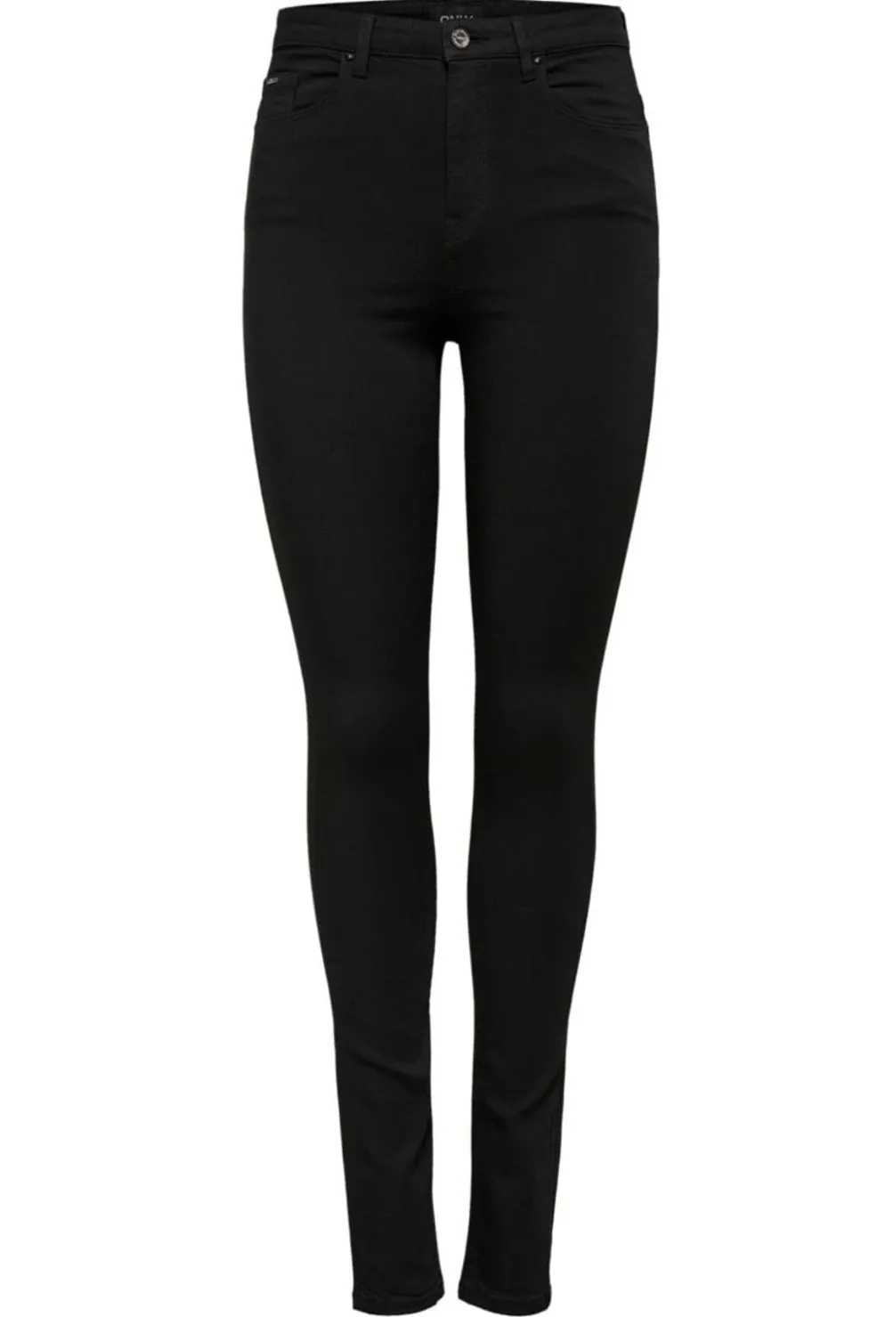 Sorte denimjeans fra Only med skinny fit og høj talje. Den tætsiddende pasform går fra hofte til ankel, og den høje talje giver god støtte.