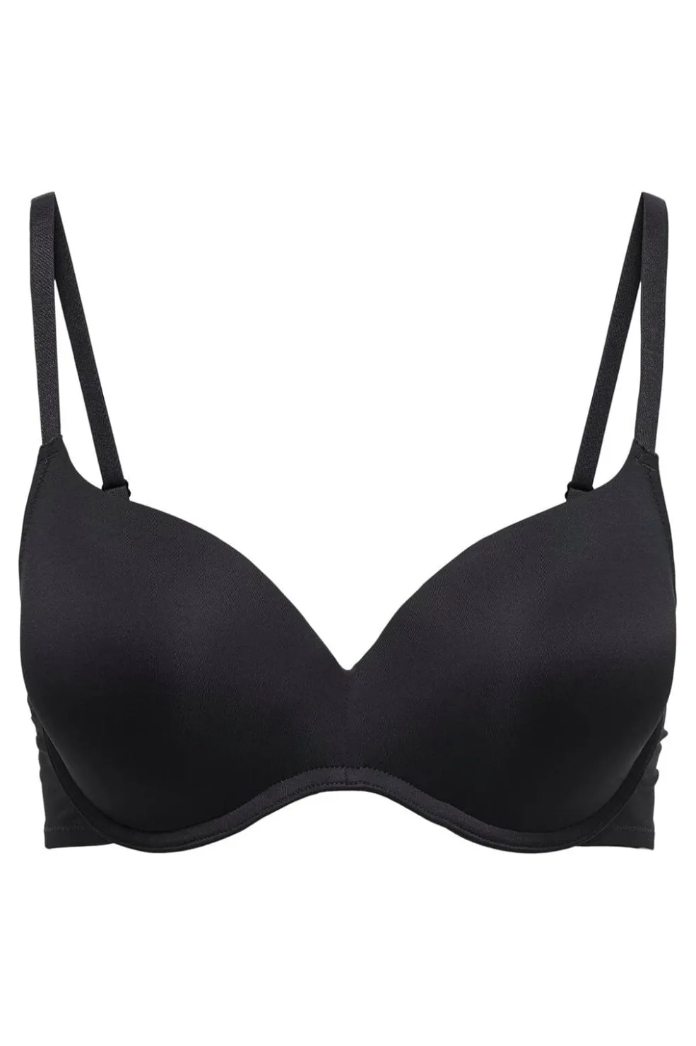 Sort bh fra Only med formstøbte skåle. Bh’en har en glat overflade og bøjler, der giver god støtte. Den er designet med justerbare stropper og lukning på ryggen.