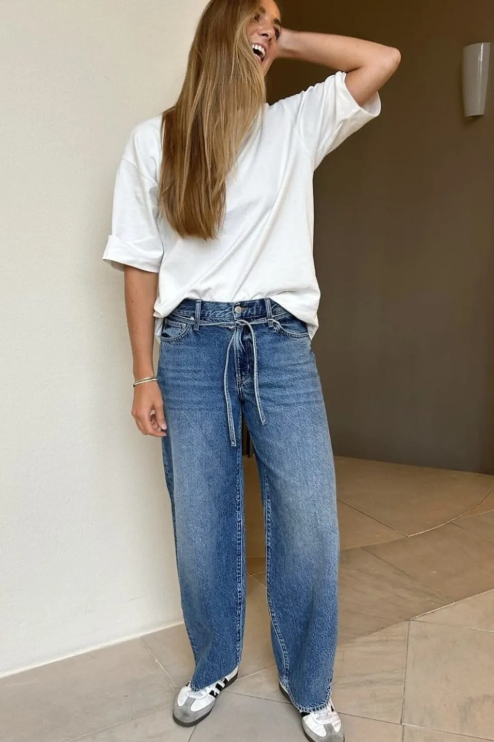 Balloon jeans fra Only i mediumblå denim med prikker. Den løse pasform og ankellængden skaber en afslappet stil, mens prikkerne giver bukserne et personligt præg.