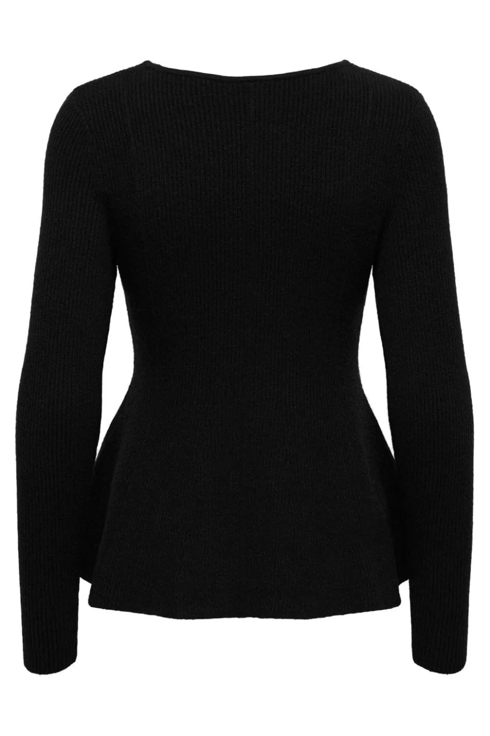 Sort ribstrikket top fra Only med V-hals og peplum-silhuet. Toppen har lange ærmer og en regular fit-pasform.