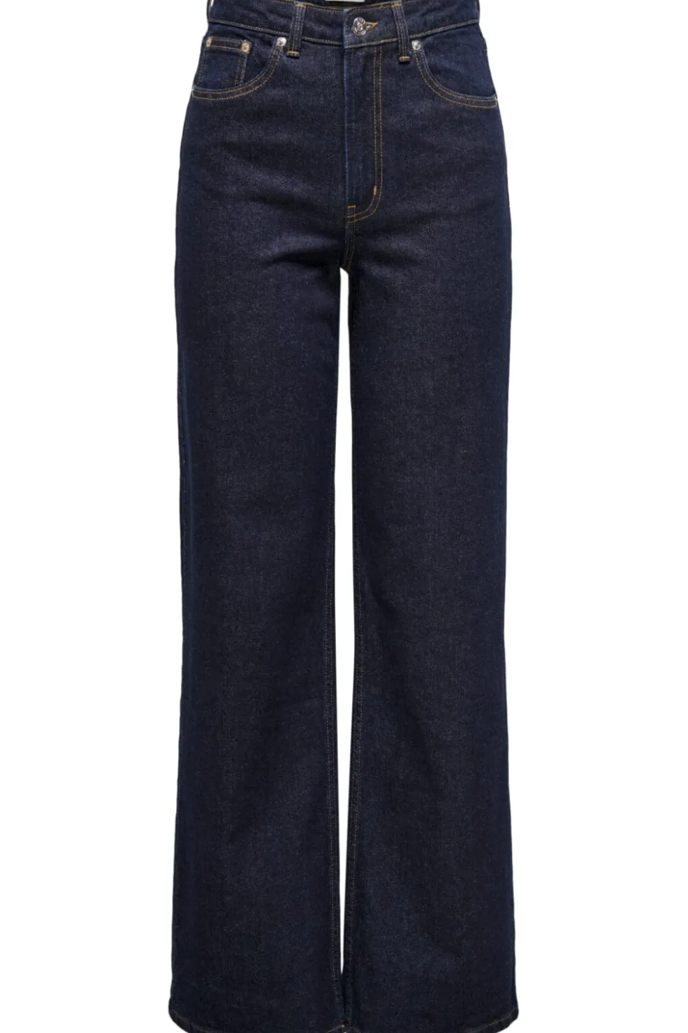 Mørkeblå jeans fra Only med wide leg-snit. Jeansene har høj talje med bæltestropper og en løs pasform fra hofte til ankel. Lynlås i gylpen og lommer både foran og bagpå.