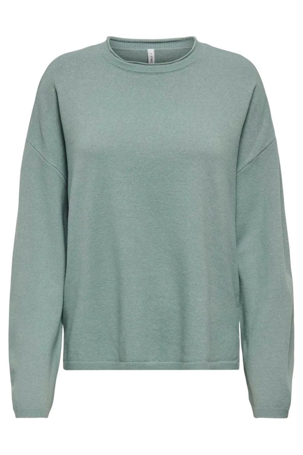 En grøn melange striktrøje fra Only med en rund halsudskæring og lange ærmer. Trøjen har en løs pasform og ribkanter ved manchetterne.