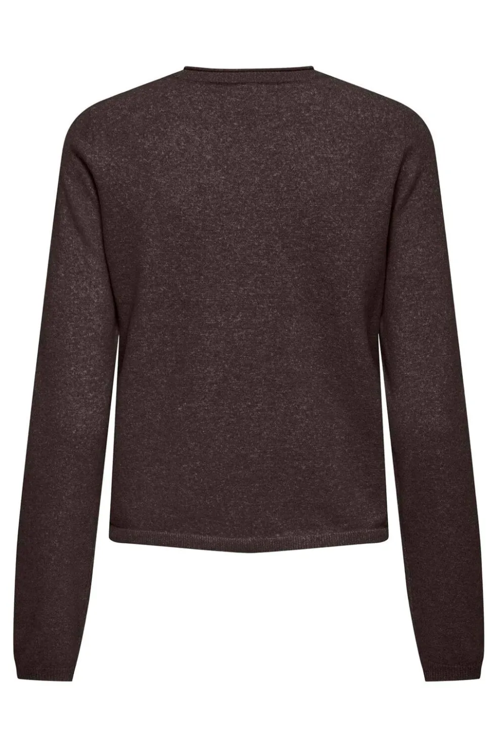 Brun cardigan fra Only, lavet af en blanding af genanvendt polyester. Cardiganen har en meleret overflade i en neutral brun nuance.