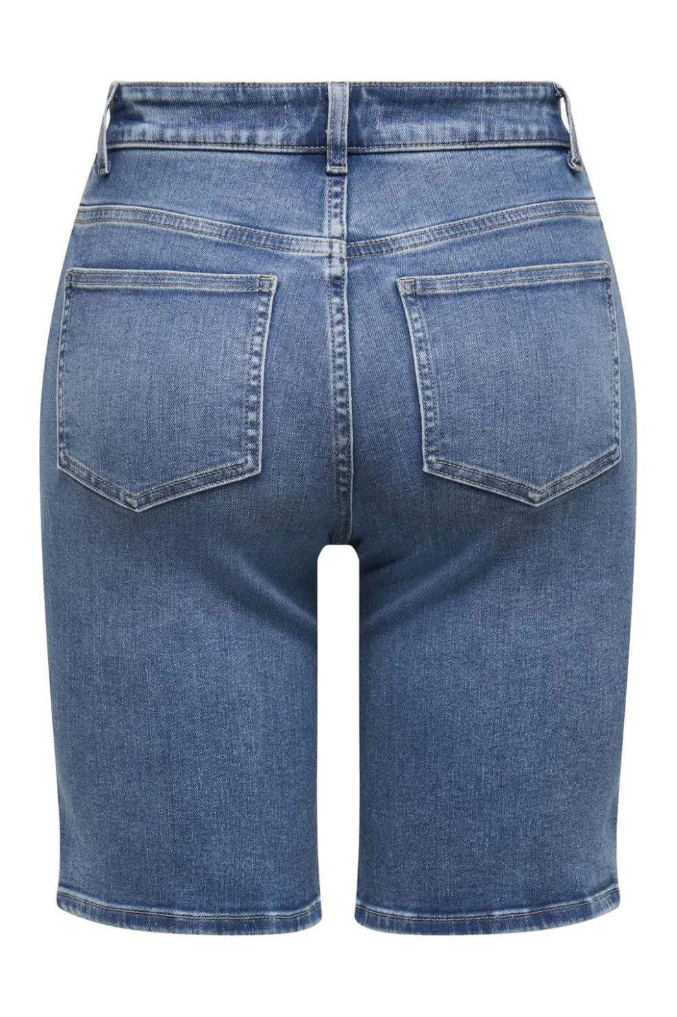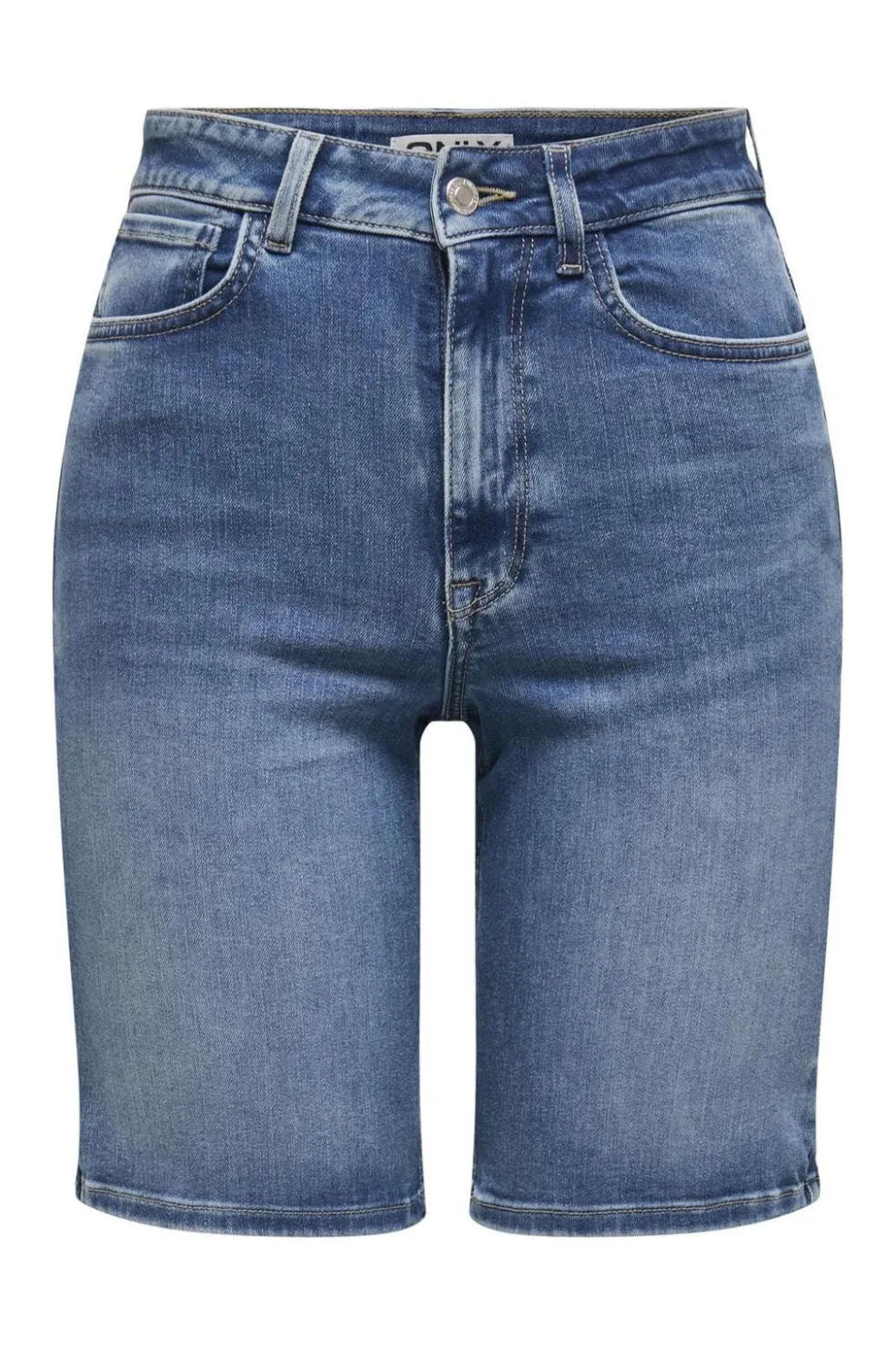 Denimshorts fra Only i mellemblå denim med høj talje. Shortsene har et klassisk femlomme-design med både for- og baglommer samt en praktisk møntlomme.