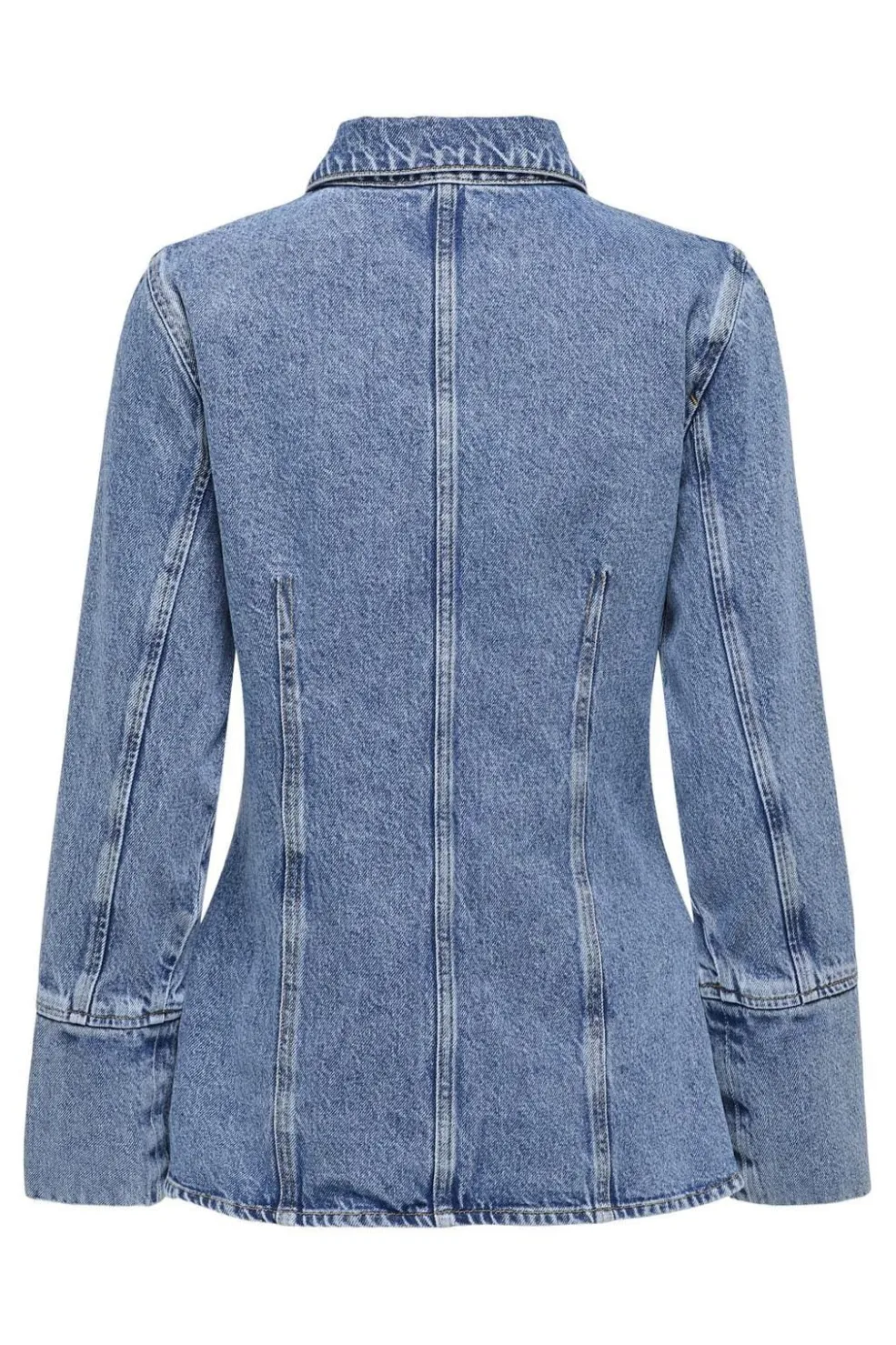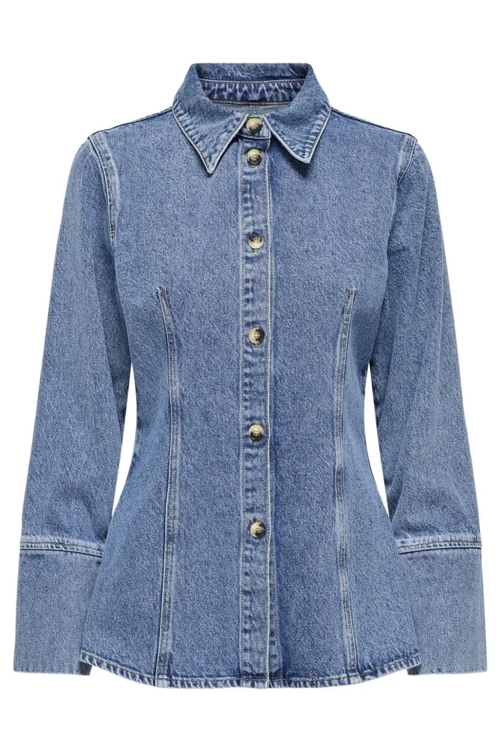 Denimskjorte fra Only i medium blå. Skjorten har en slim fit-pasform med klassisk skjortekrave og lange ærmer med høje manchetter.