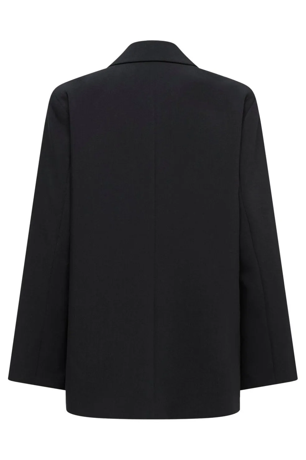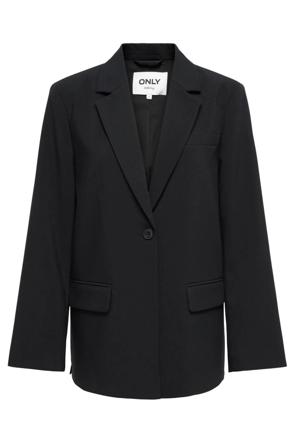 Sort blazer fra Only med oversized pasform og V-hals. Blazeren har en klassisk revers og lukkes med knapper foran. Den er designet med lommer med klap på siderne.